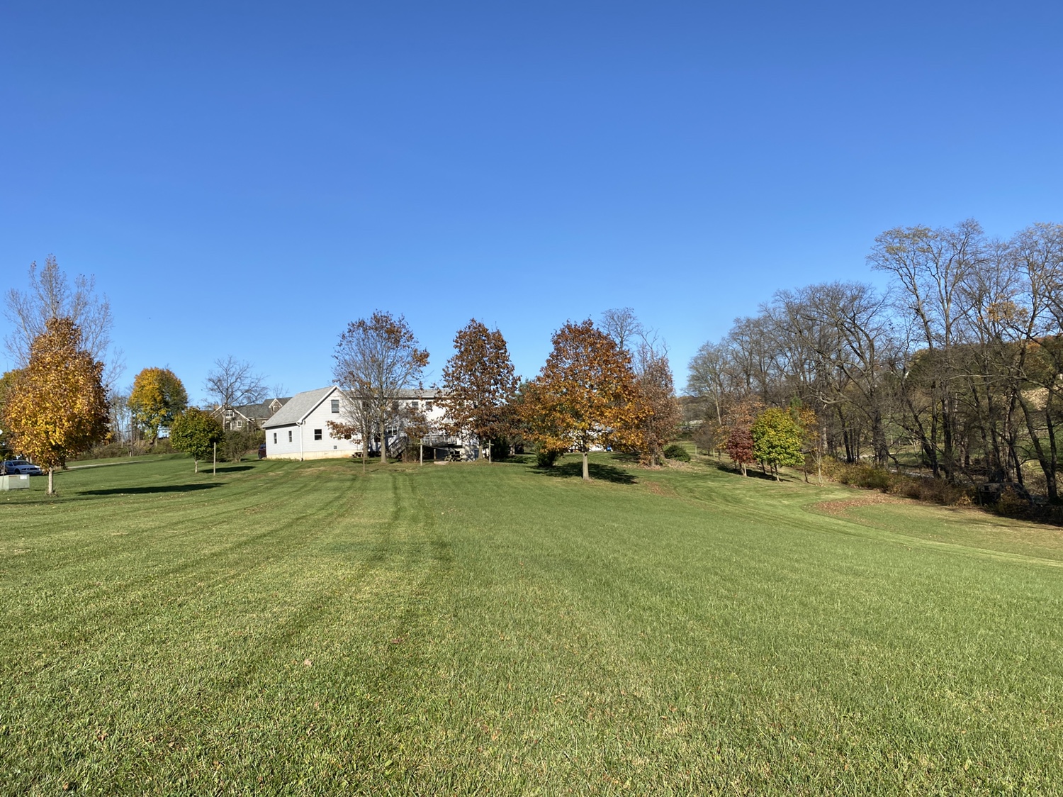 More compost screening done over the last several days and clean up of debris by southeast planting bed, worked on repairing berm around catch basin, sprayed rebar with orange marking paint for driveway markers, blew leaves off area that needs seeded behind west planting bed, blew leaves out of excavation for creek crossing.