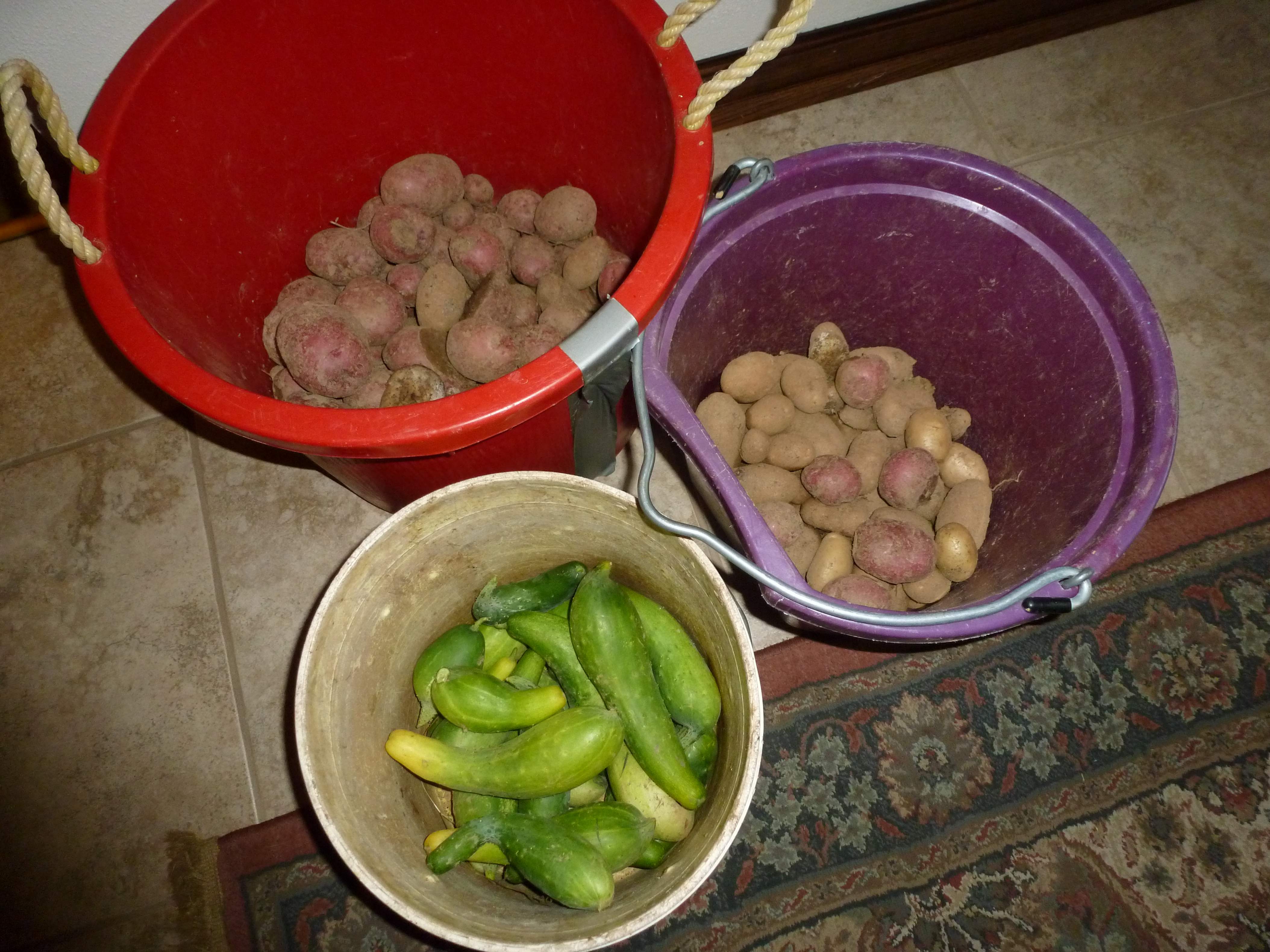 did a little picking yesterday, one row of potatoes and the first good batch of cucumbers.