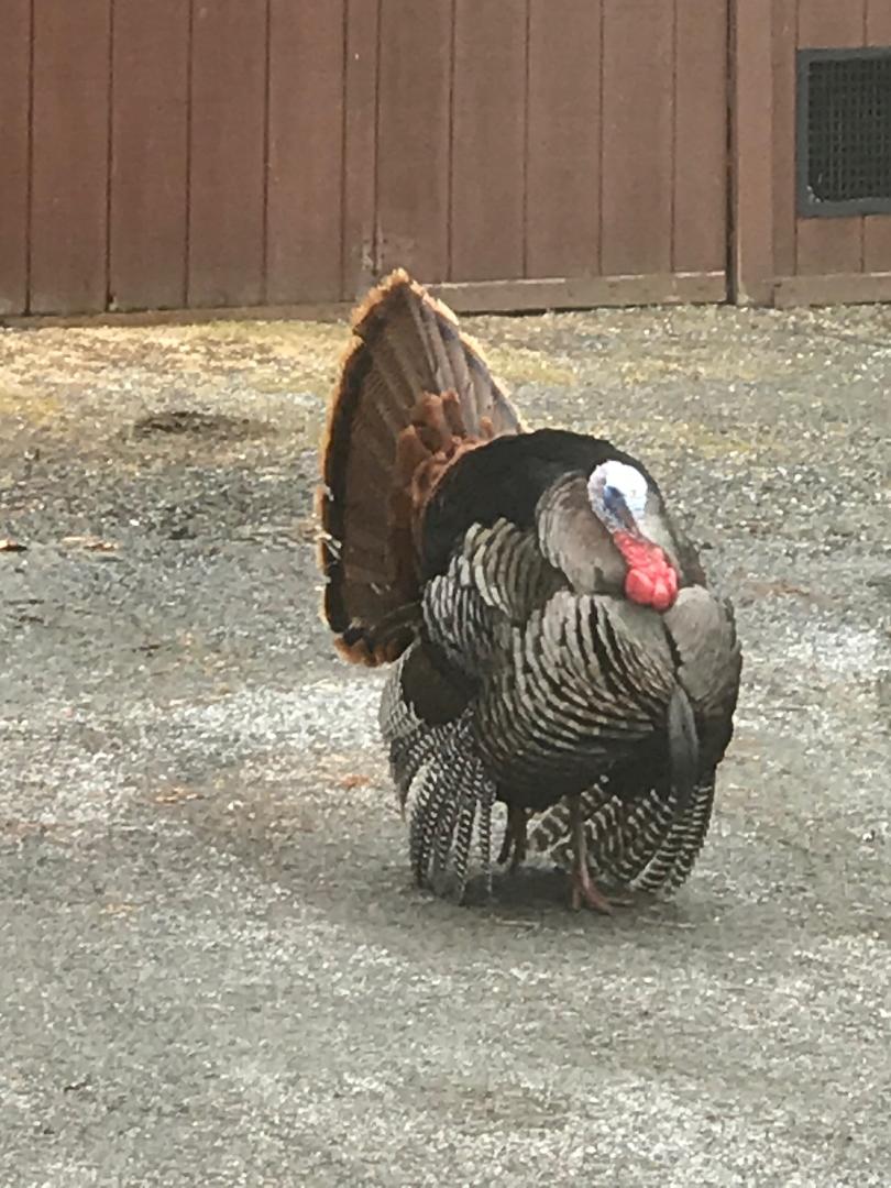 Tom turkeys guessing decided to hang around house for there safety yesterday and now enjoying there Thanksgiving breakfast.