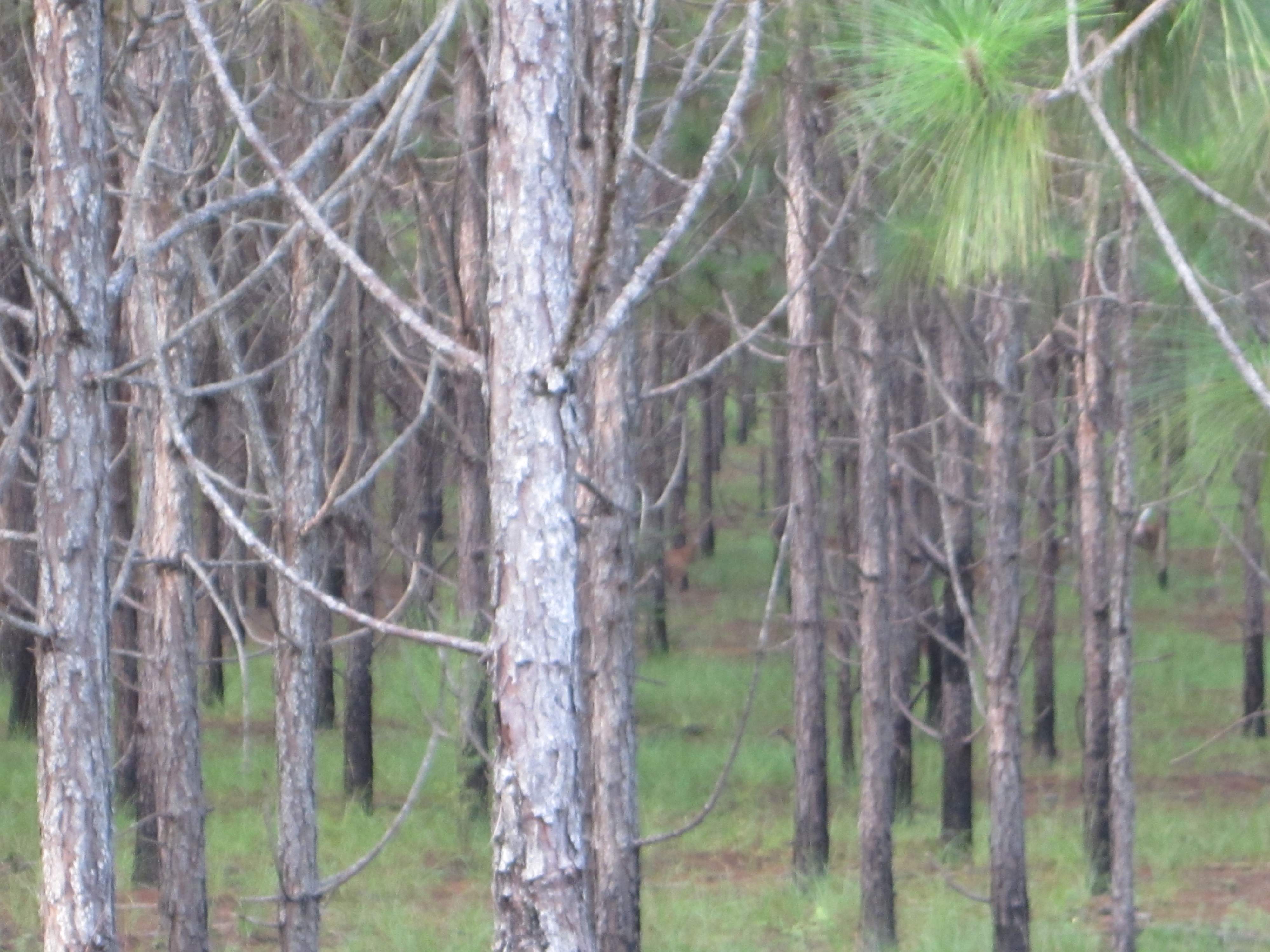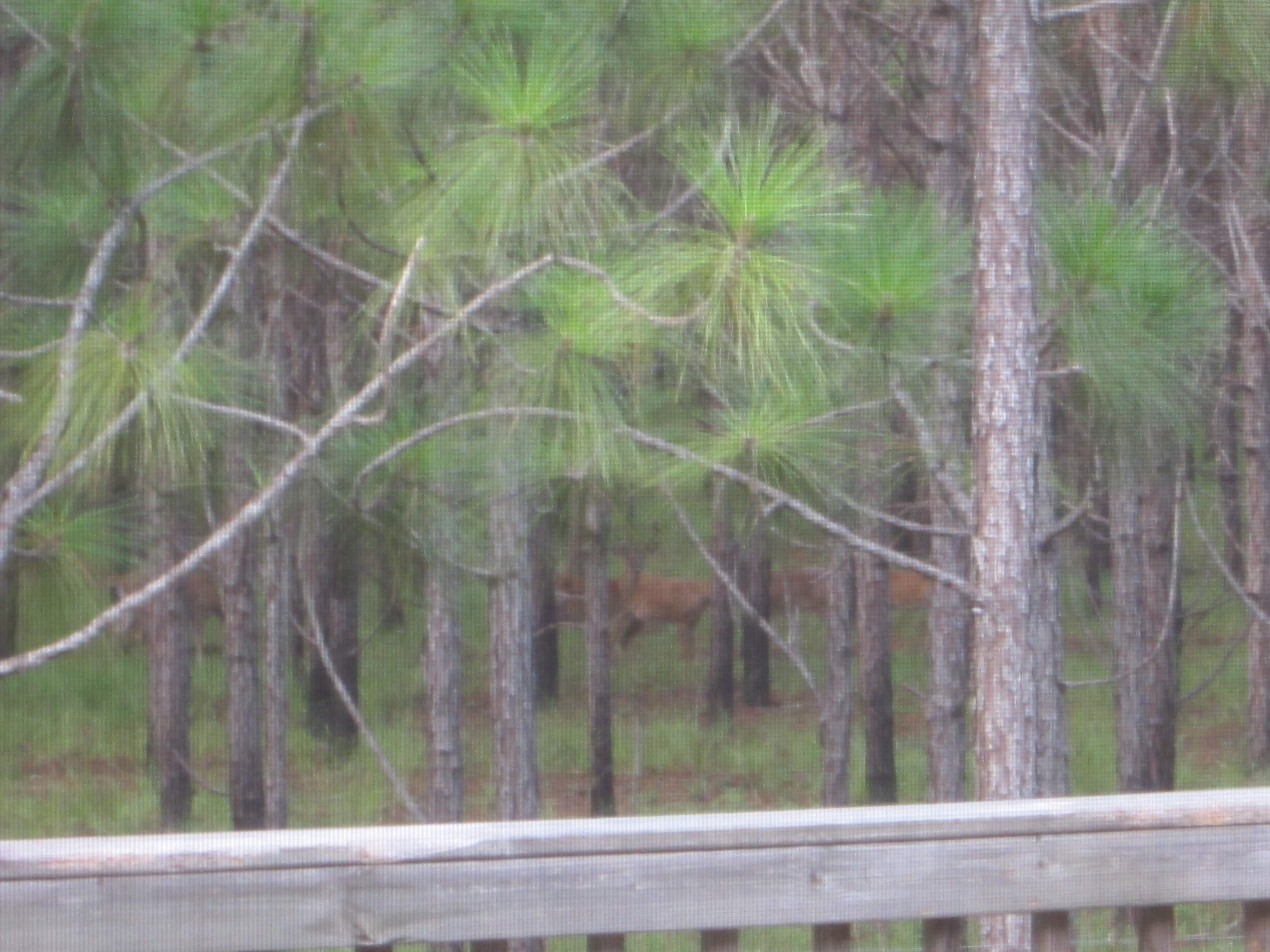 Morning all. Sunny, 80 with 88% humidity. Forecast high of 93 with 50% chance of rain. When I went out on back porch to feed the dog and the back yard cat, there were six deer just past the deck in the edge of the longleafs. Three of them were bucks. Since they didn't run, I eased back inside and got the camera. Had to shoot through the screen, so the quality is not the best. You may have to enlarge the picture to see any horns. {or not. It just makes it blurry}