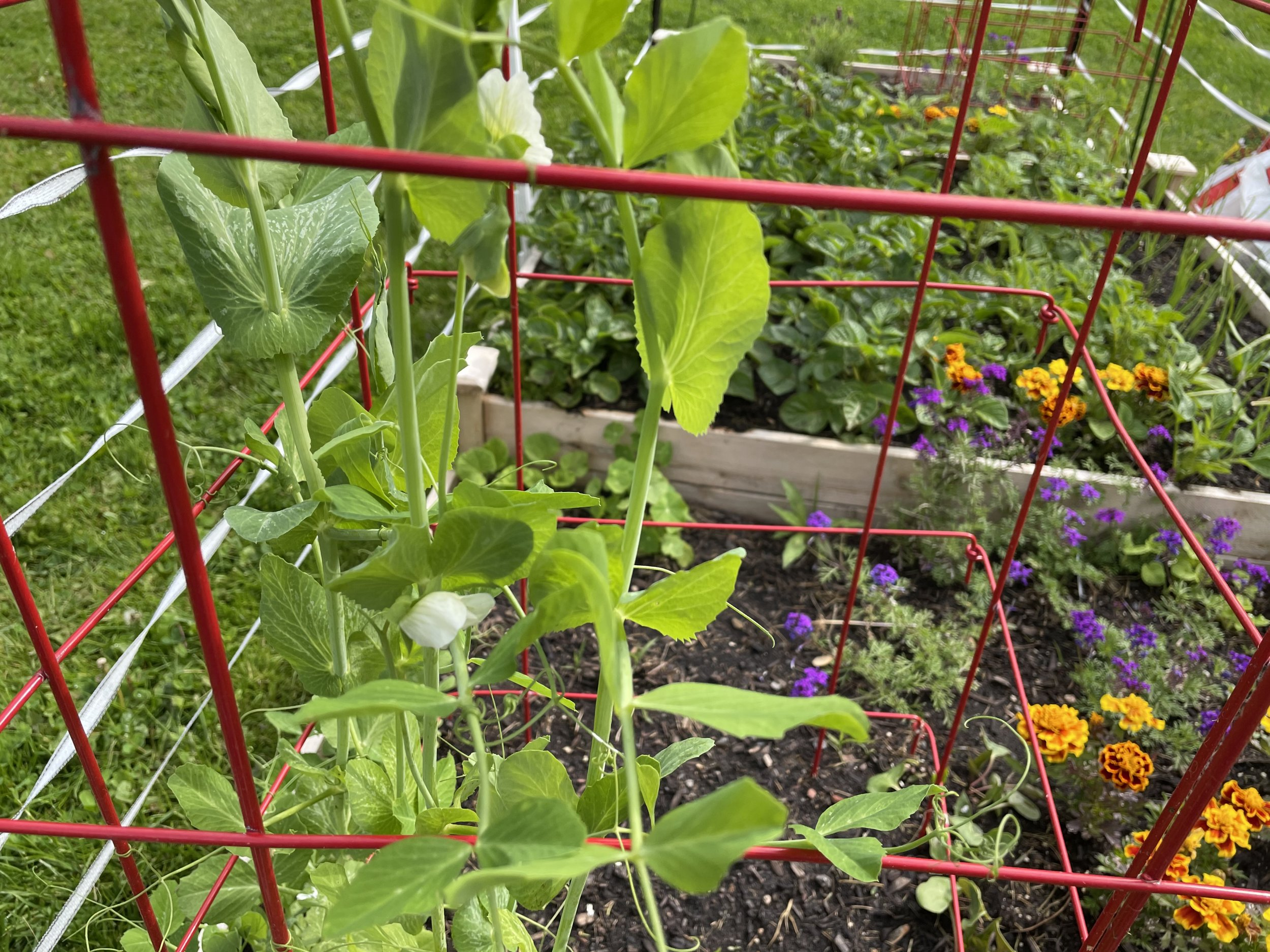 3rd blossom on the snow peas. Most of the early ones I eat right off the vine.