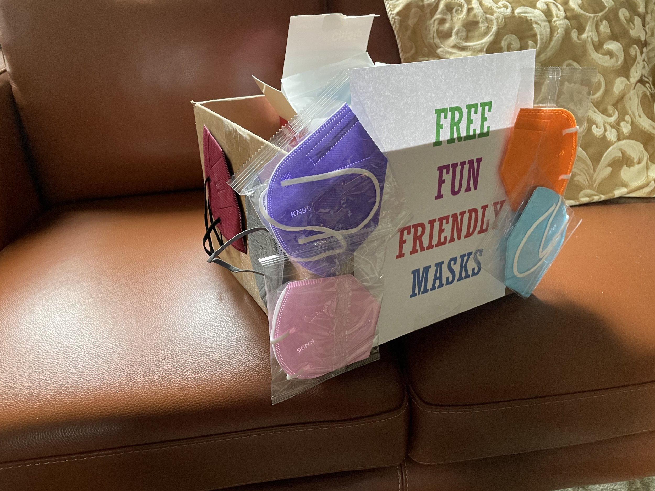 Made up a box of colorful masks to take to church tomorrow for the kids who are still required to wear masks.
