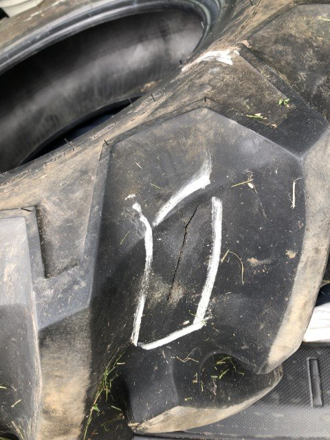 Half an hour later I had loaded with rocks, took them into the field to dump and had my second (less fortunate) catch of the day - my front tyre on a piece of rusty steel, hidden in the long grass.