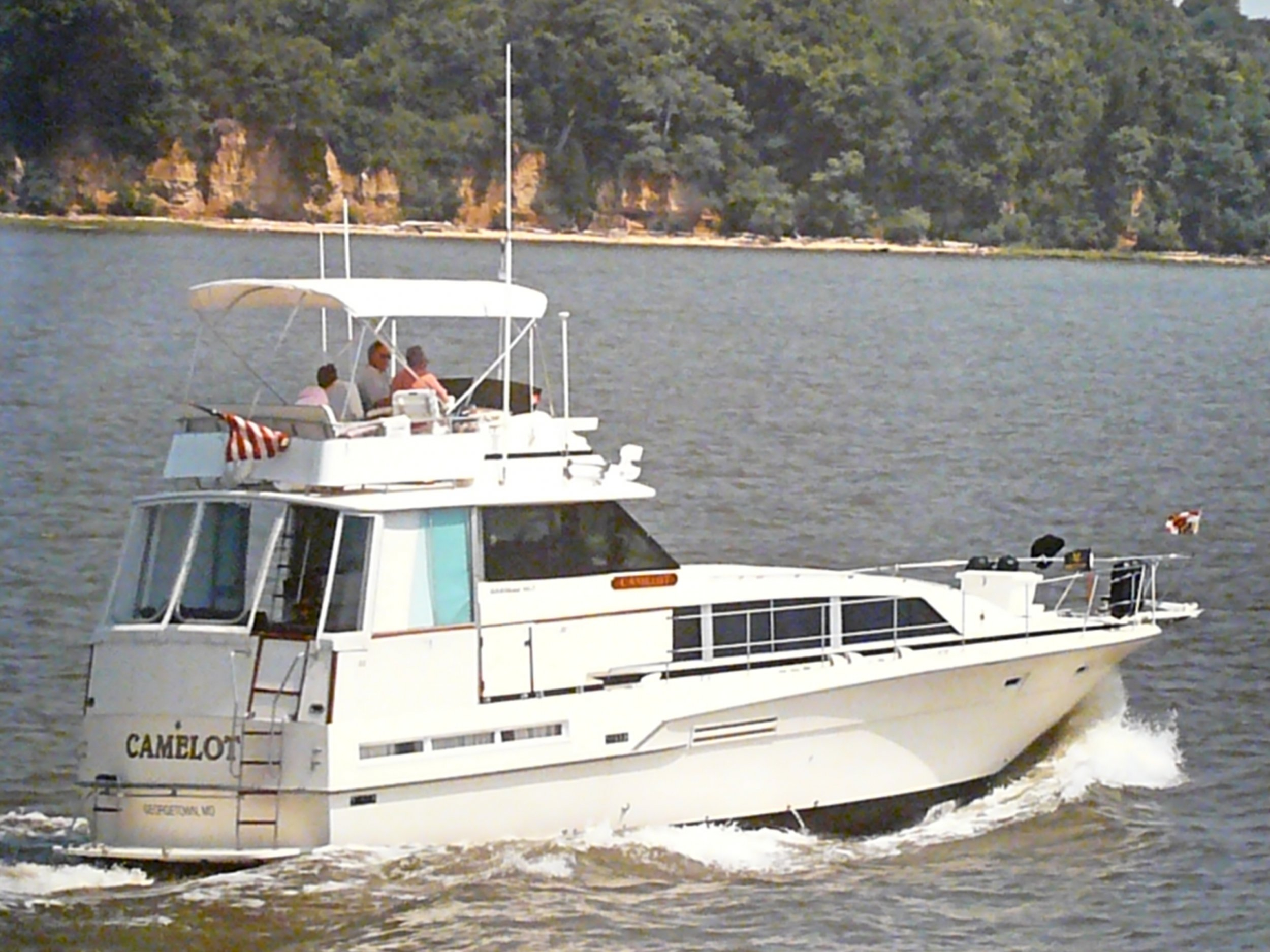 Chesapeake as we were entering Still Pond and the picture taking helicopter zoomed by. They are sitting up on the flybridge and I know they remember the moment.