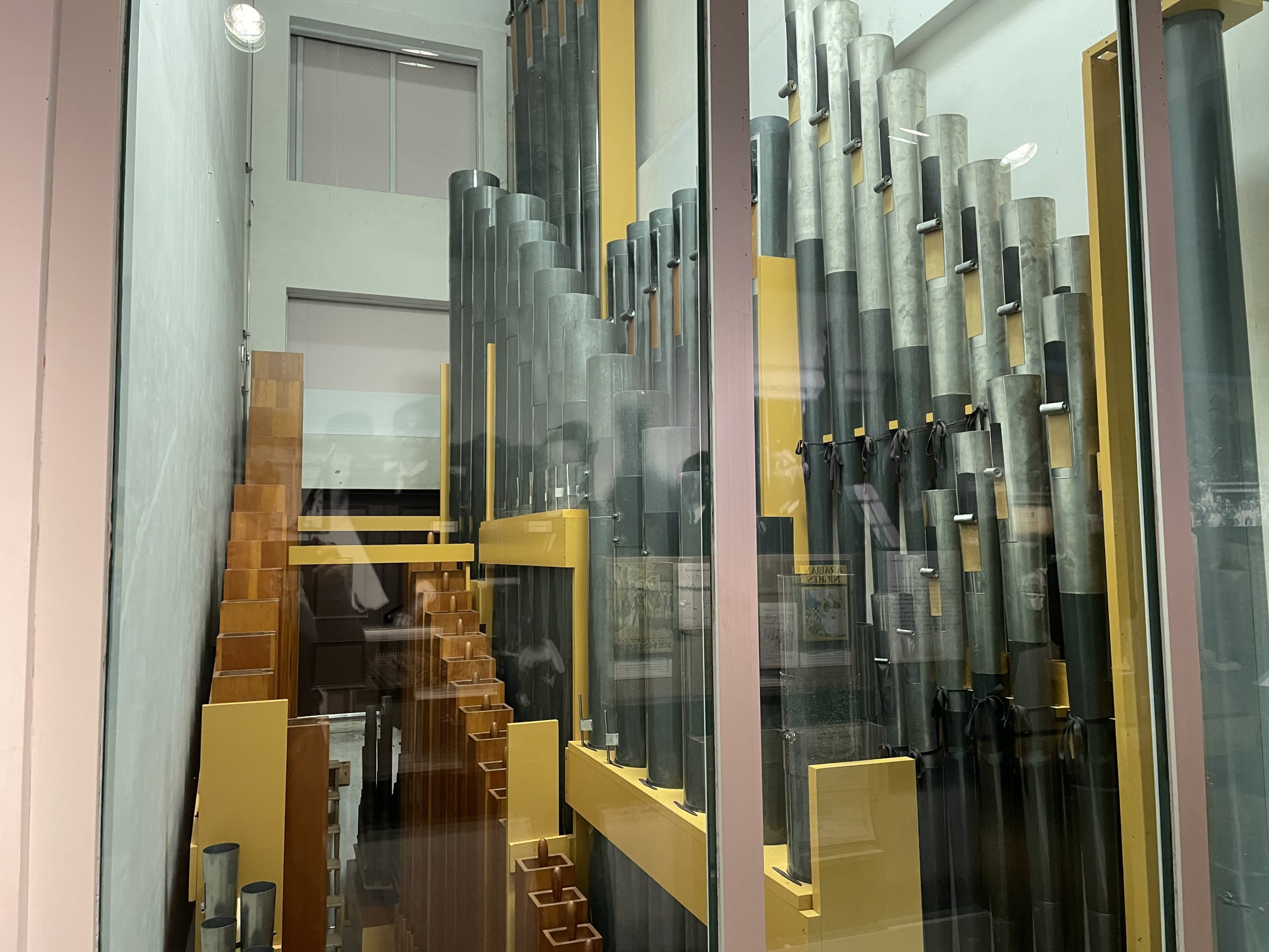 there was another room that was hard to photograph that had all large tall wood square tubes, probably for really low bass notes