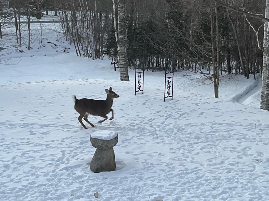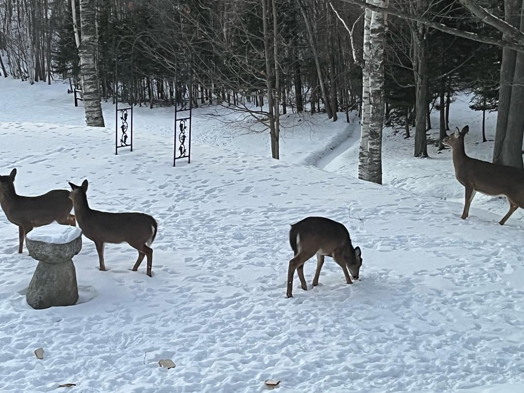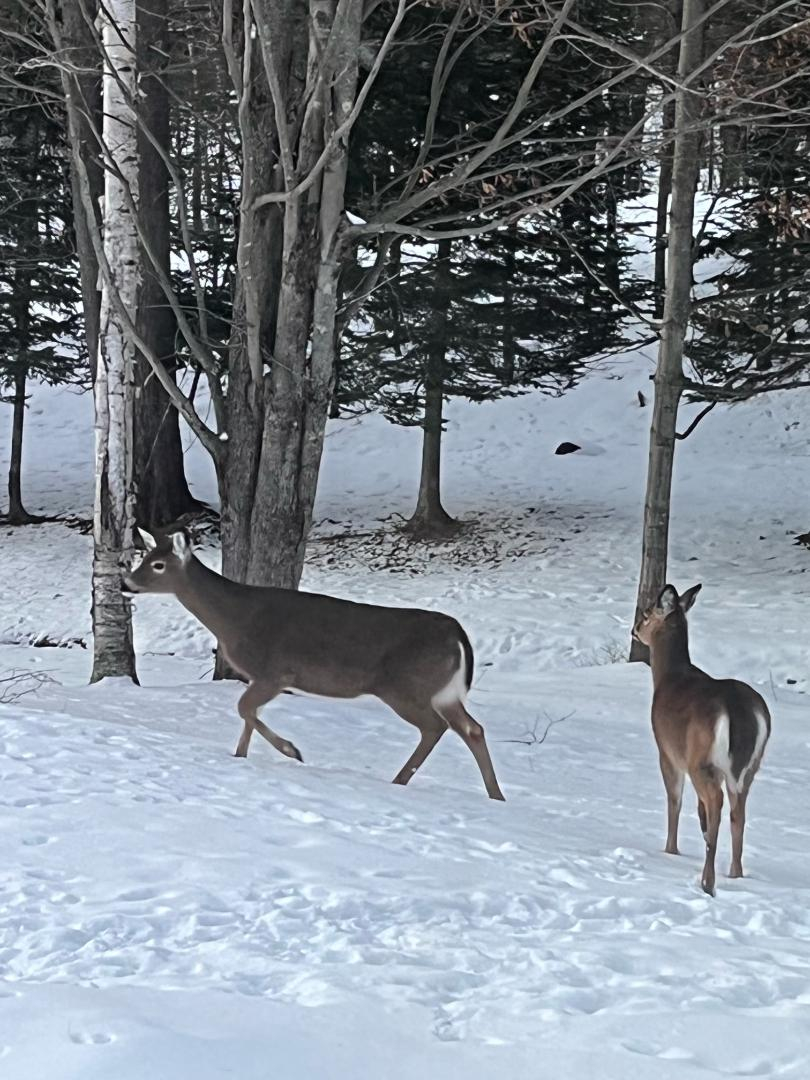 Doe's passing by just before sunset this evening heading to their deer yard.