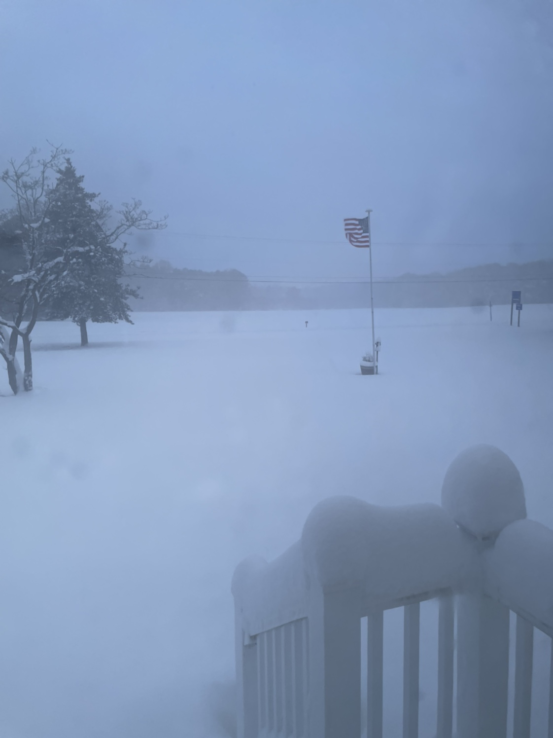 Around 9.5” here, over a foot in the beach areas. Still snowing heavily. A pot of soup on the agenda today.