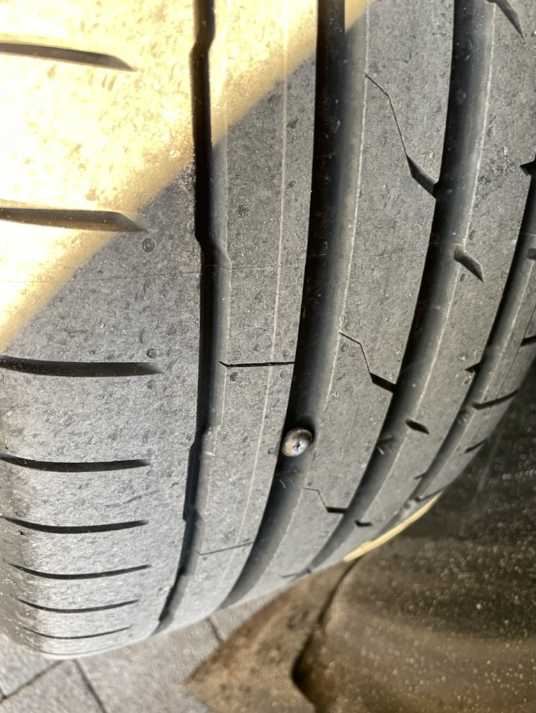Looks like that tire got screwed, Helogabals. At least it's in the middle of the tread, so they'll probably be able to plug it.