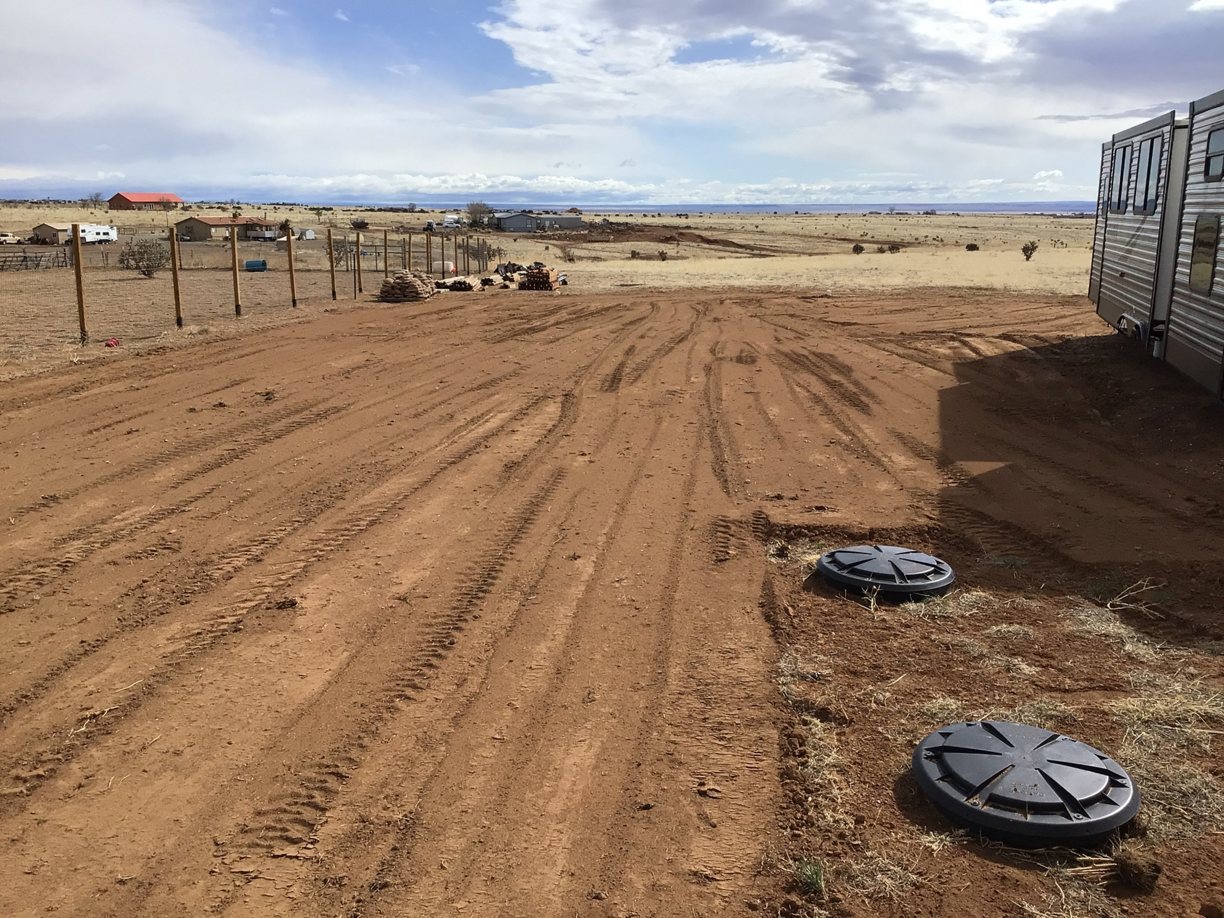 I had a big pile of dirt from cutting in the driveway, about 20' x 20' x6' high. The area of our septic system was always rough, especially after settling. So, spent almost 5 hours spreading and grading the dirt out over a 50' x 120' area. I still have about 15-20 bucketfull loads to spread, but now too damp today.