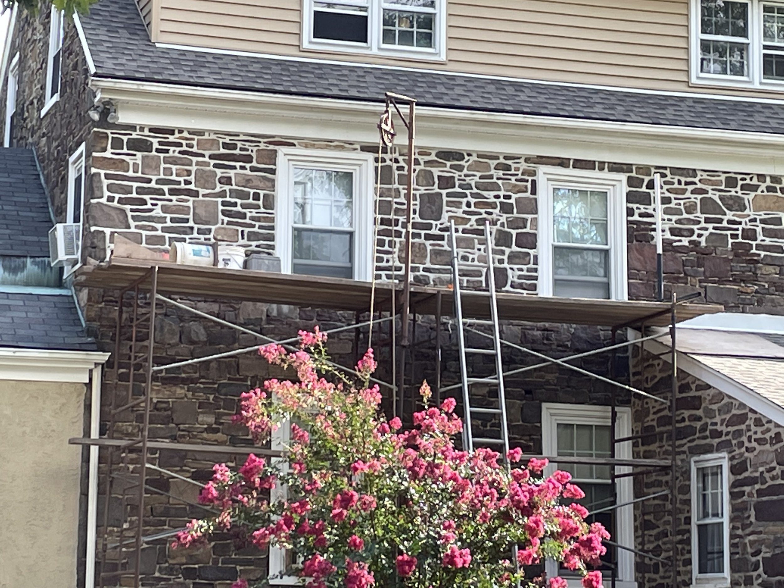 mason is making good progress on mortar project for caretaker's home.