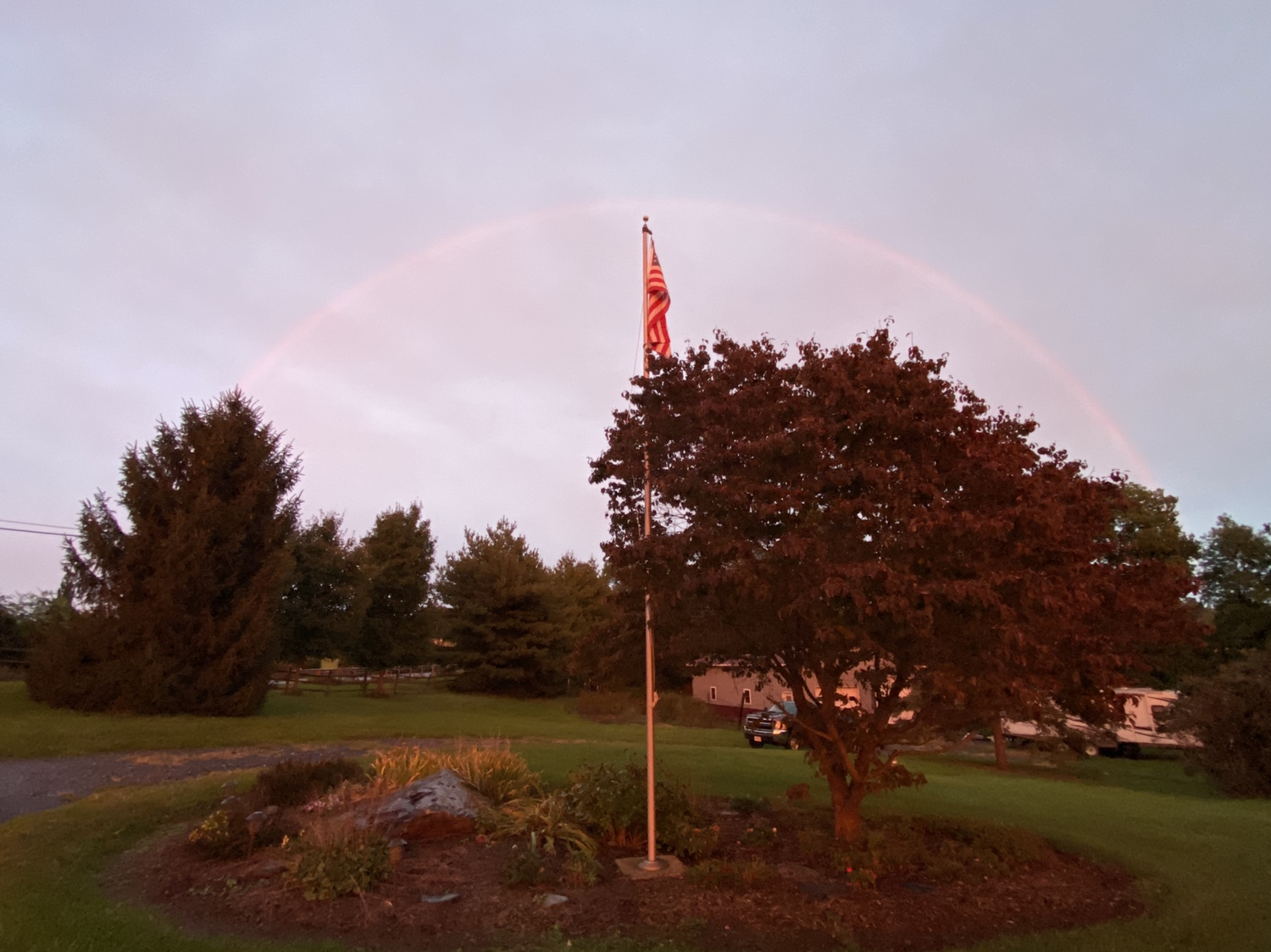 Went out to feed snagglepuss and saw nice sunset and rainbows. Light rain sitting on porch at 48°View attachment 764917