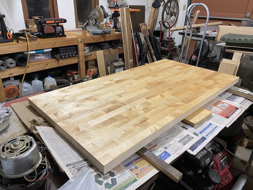 Woman and I made the run up to Menards and got the return done and picked up the butcher block top. We also did a little grocery shopping while we there: we went by the grocery area on the way up to check out and something caught Her eye (She was hungry) and commented that it was a really good price. This is real progress as when I've previously suggested grabbing some grocery items at Menards She poo-poo'ed the idea. Can't think with the idea that a big box home improvement store would have food items and they would actually be FRESH ... :LOL: