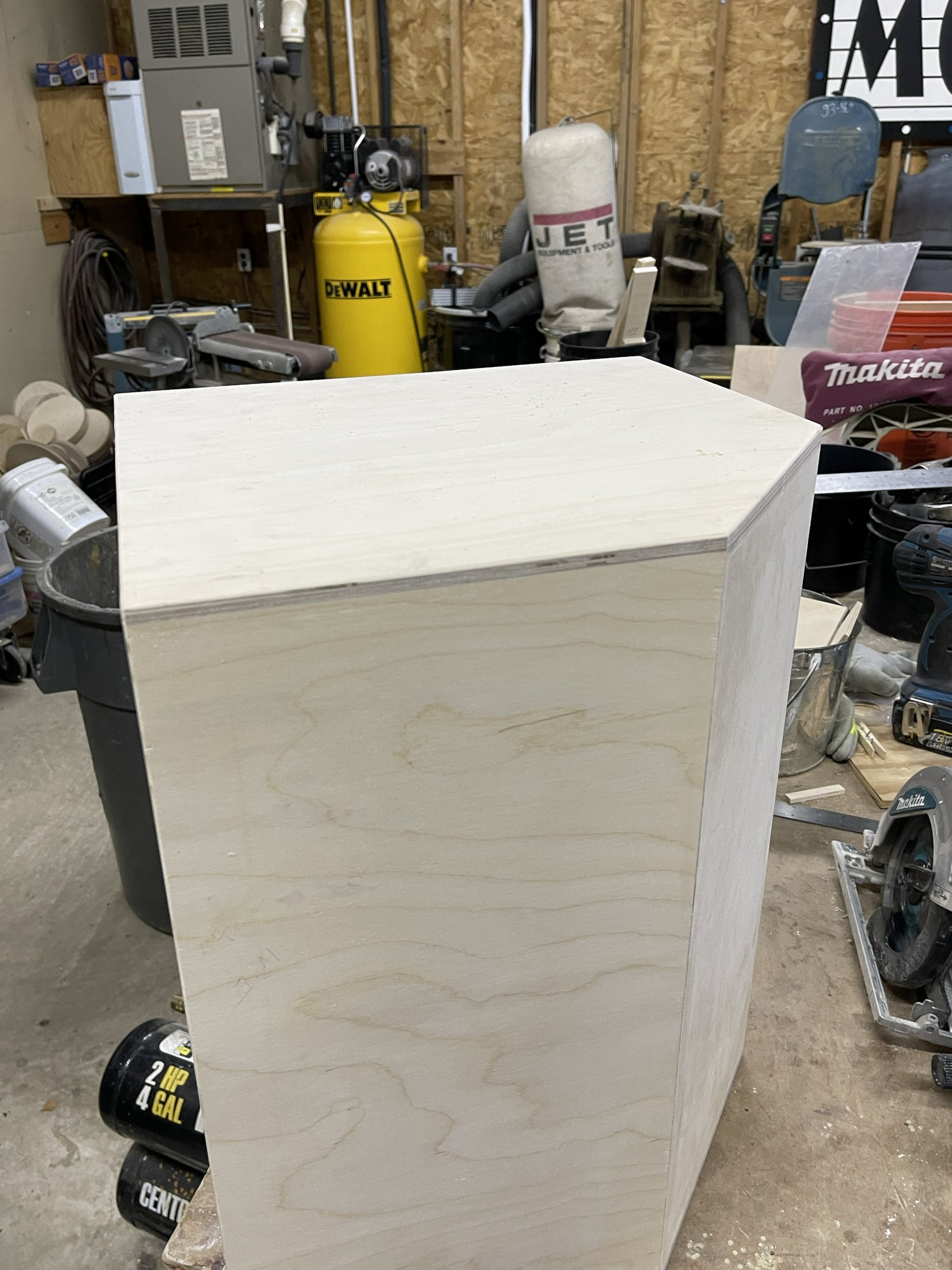 When I build the boxes, I oversized the top and bottom, trim them to within 1/16” on the table saw, and then flush with the router.