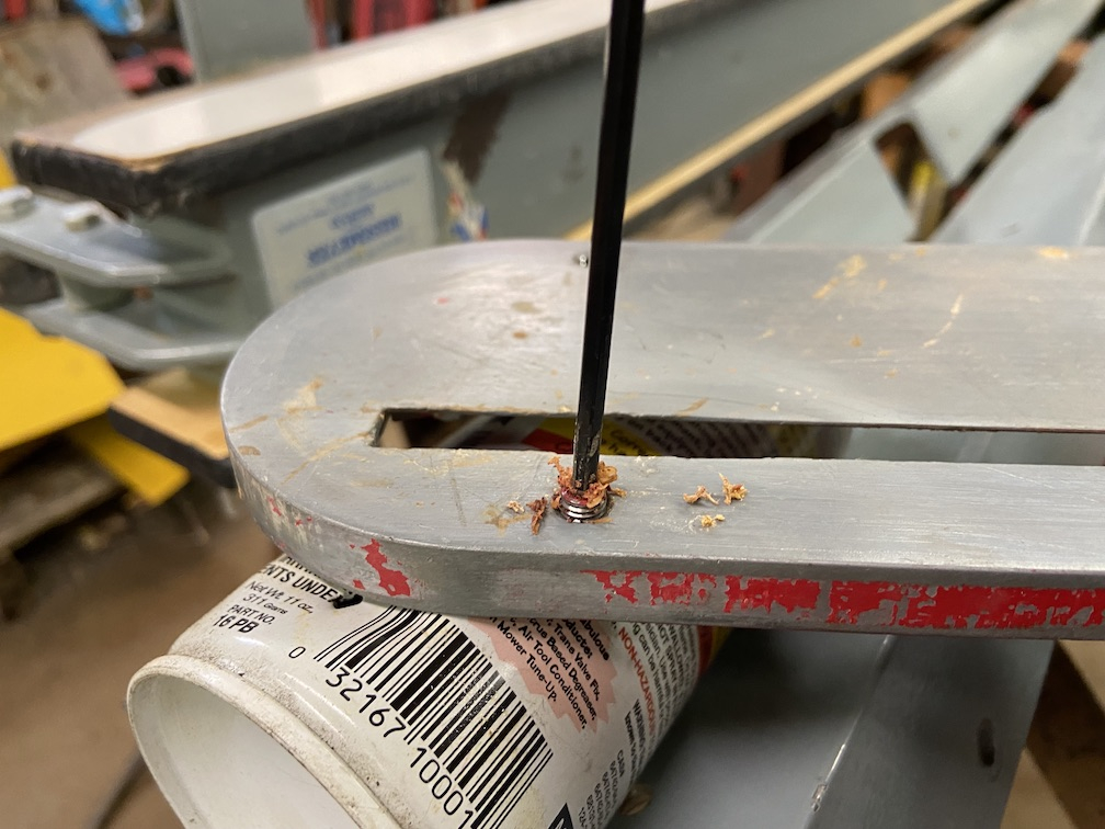 Screwed around quite a while trying to dig that out with a pick to get a hex bit in there to remove them. Finally hit it with carb cleaner and the acetone in that softened it right up. Chased the screws with a die after I got them out.