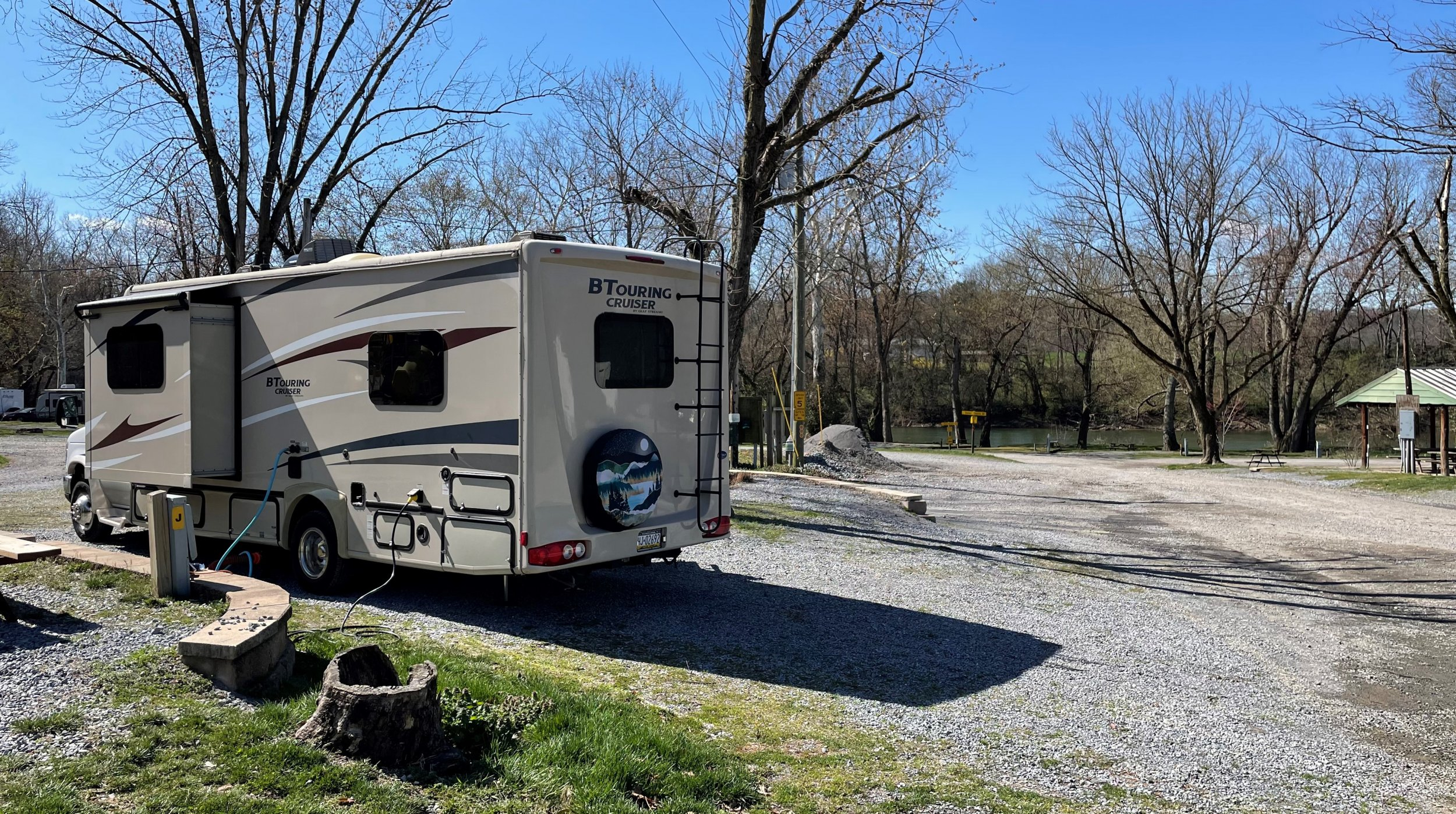 easy drive today, wind had died down, but picked back up the further North I went. Nice KOA campground by a local river, Frits is on his way over this afternoon and hopefully we can take a walk and check it out.