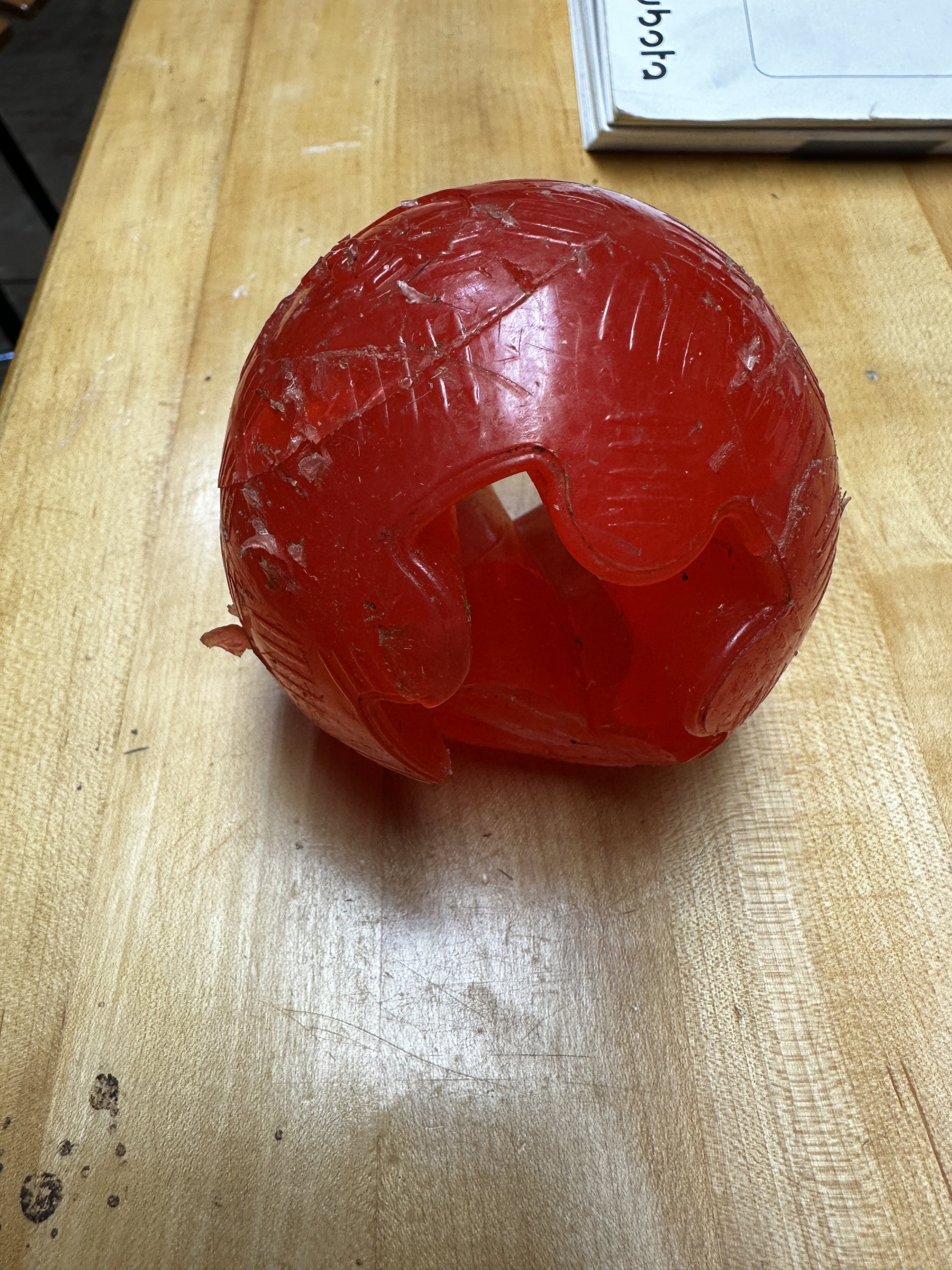 Have a mystery. Found a red ball somewhat bigger that a tennis ball and heavy plastic. Was out in the middle of the field and ran over it mowing. Did not notice any tracks and was too far to be thrown . Any of you recognize this?