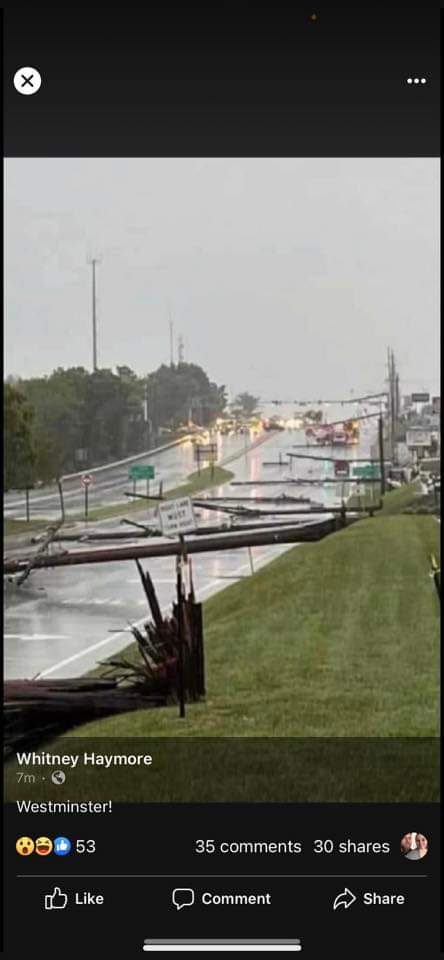 there were pics of a bunch of cars and trucks trapped inside downed lines in Westminster MD, couldn't get out of their cars,