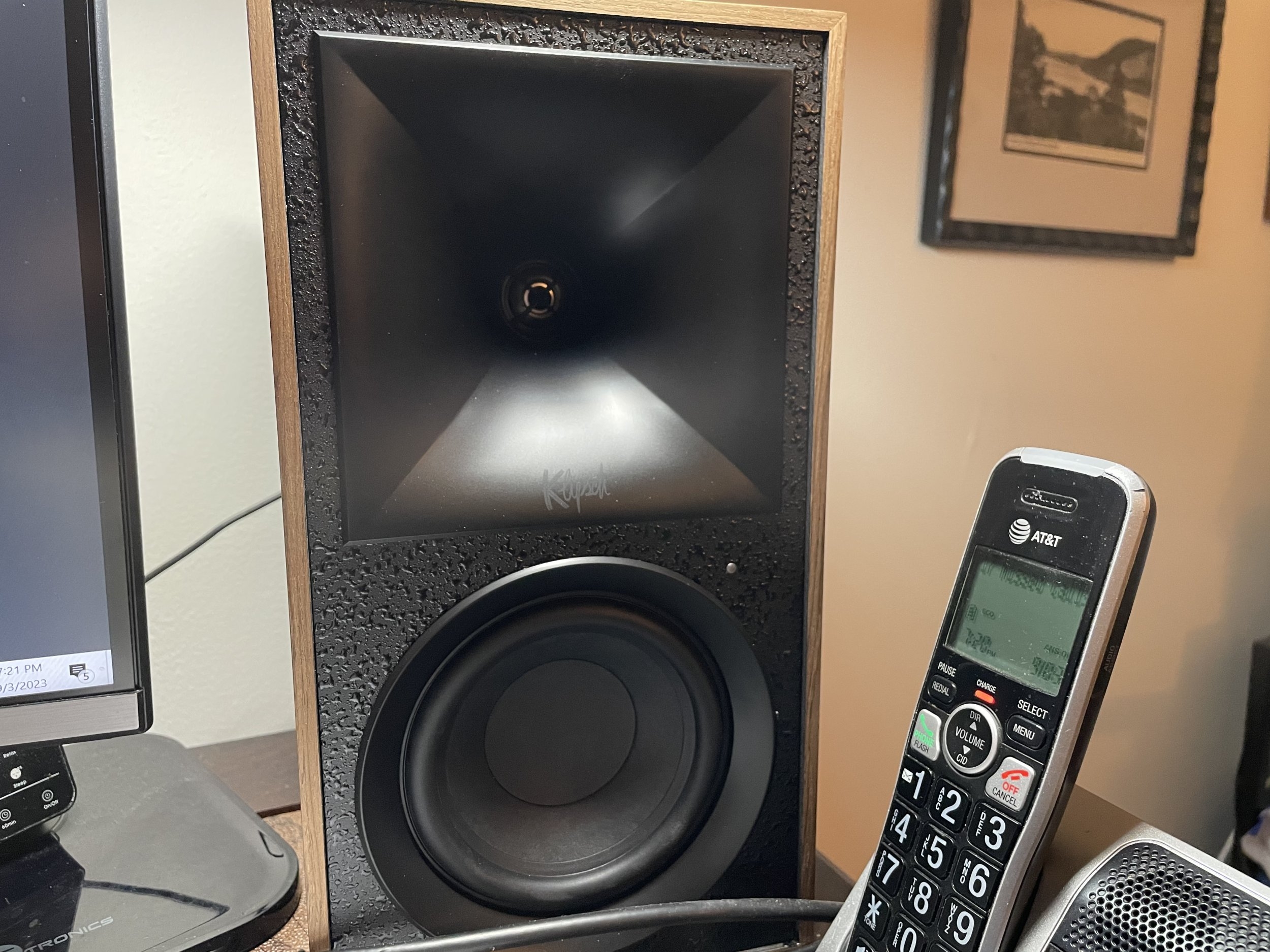 I can't crank up the music very loud but my little Klipsch speakers have those horns about three feet from my head