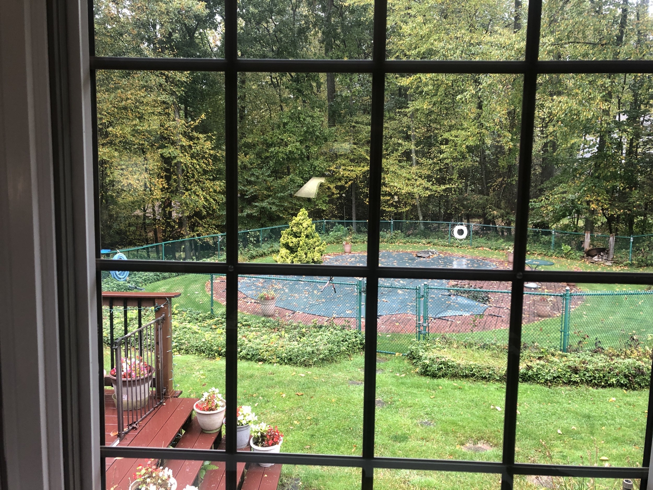 Im with Ron on colors here in Ct, Vermont was another story ! We were in Vt early last week for a few days and I thought the colors were close to peak. But here in Ct, things are going much slower ! Here is a shot looking out are back kitchen window into the back yard. The only real color is the yellow from the birch trees. Most of the oaks back there do not provide much in the way of nice colors !