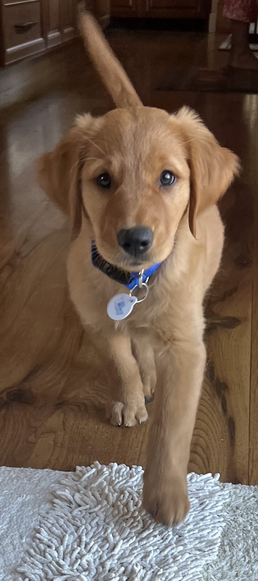Della is officially house trained, and doing well on her leash and on her rock climbing "playground." Her favorite toy is any cardboard box, and her favorite food right now seems to be rabbit poop pellets in the yard...have to watch her closely.
