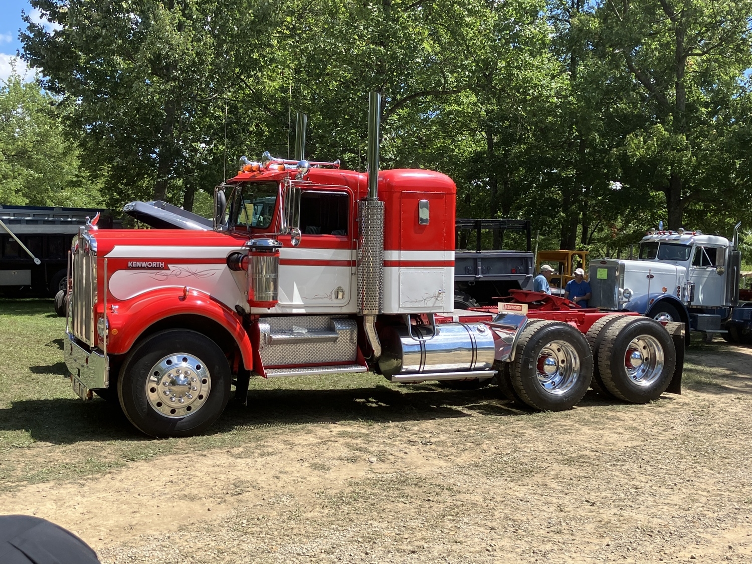 That Kenworth is a 1965/66? Not sure on the Pete in the background. The pickup looks like a '52 Ford.