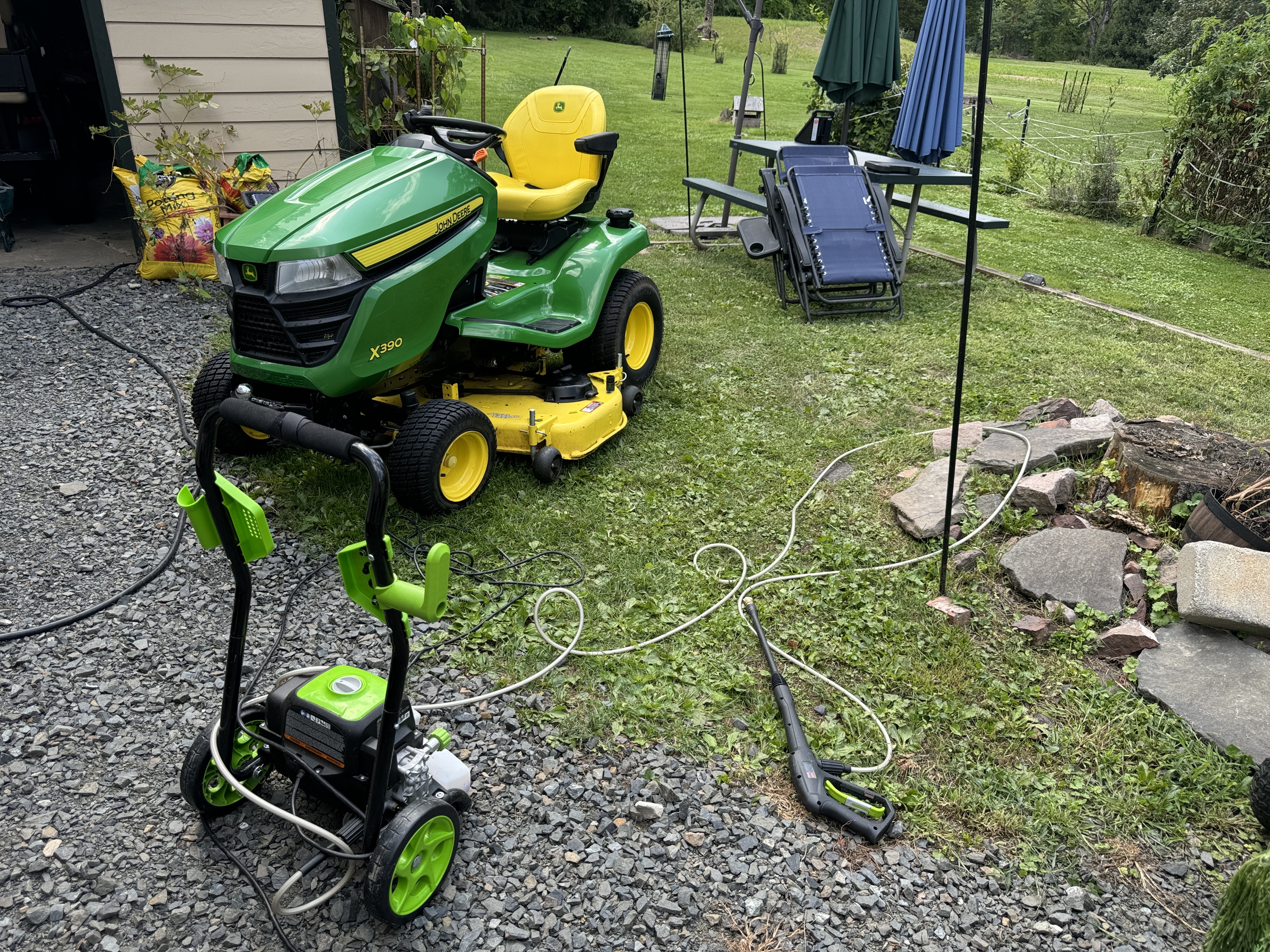 next two months. So had to clean up mower to put it away, powerwashed it, then blew dry carefully with