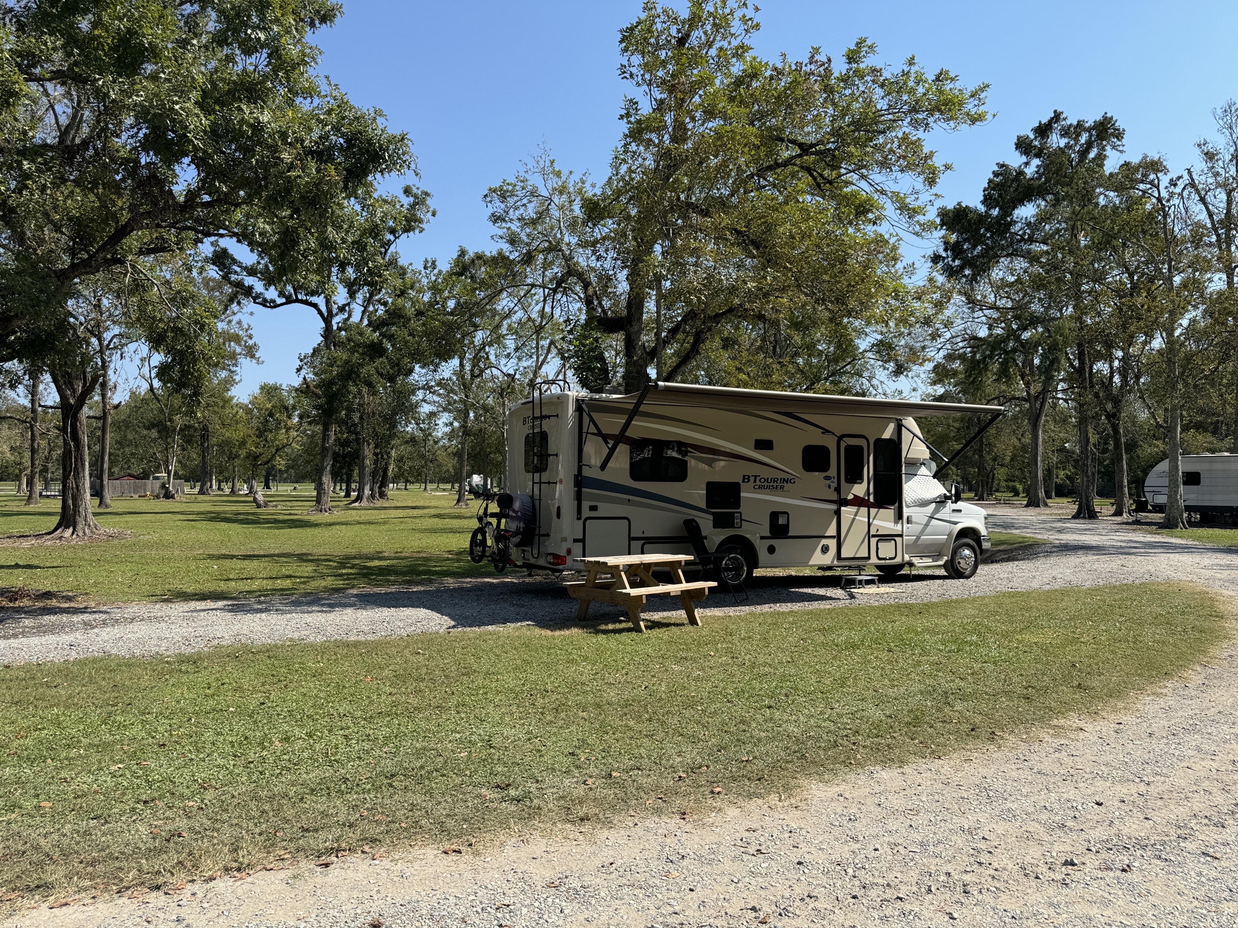 all tucked into a very nice spot at the Cajun Heritage campground in Beaux Bridge LA.