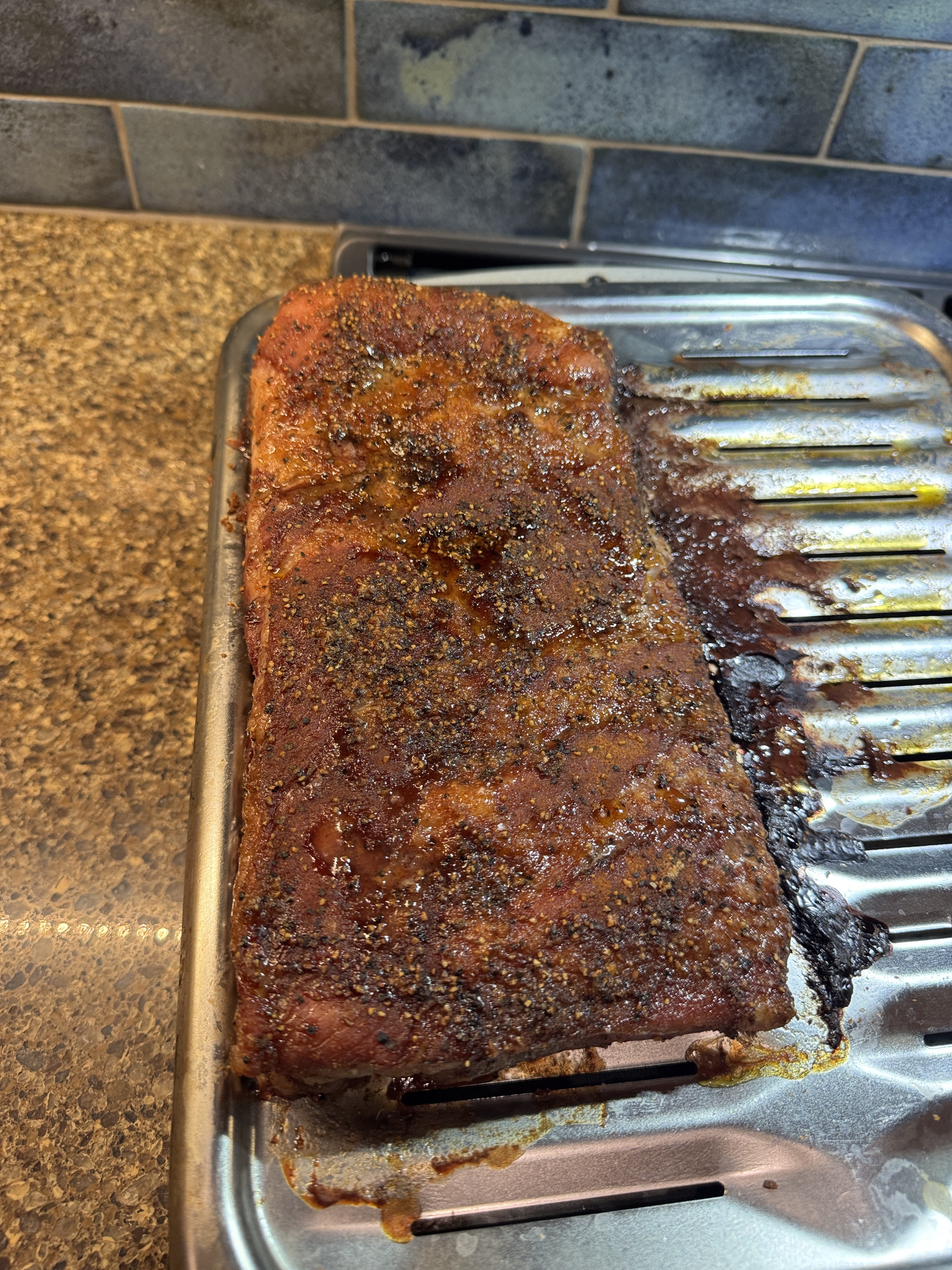 Yesterday was another day of random chores. Got some more stuff moved and up on the walls, collected all the recycling and trash and got it to the end of the lane, hauled a carryall load of wood up from the woodshed, reset the TPMS on wife’s RAV4, and did cook ribs for dinner. I have to say that I regret not firing up the smoker, cooking them in the oven just doesn’t compare. I dry rubbed them and cooked them at 250°, but they were lackluster at best.