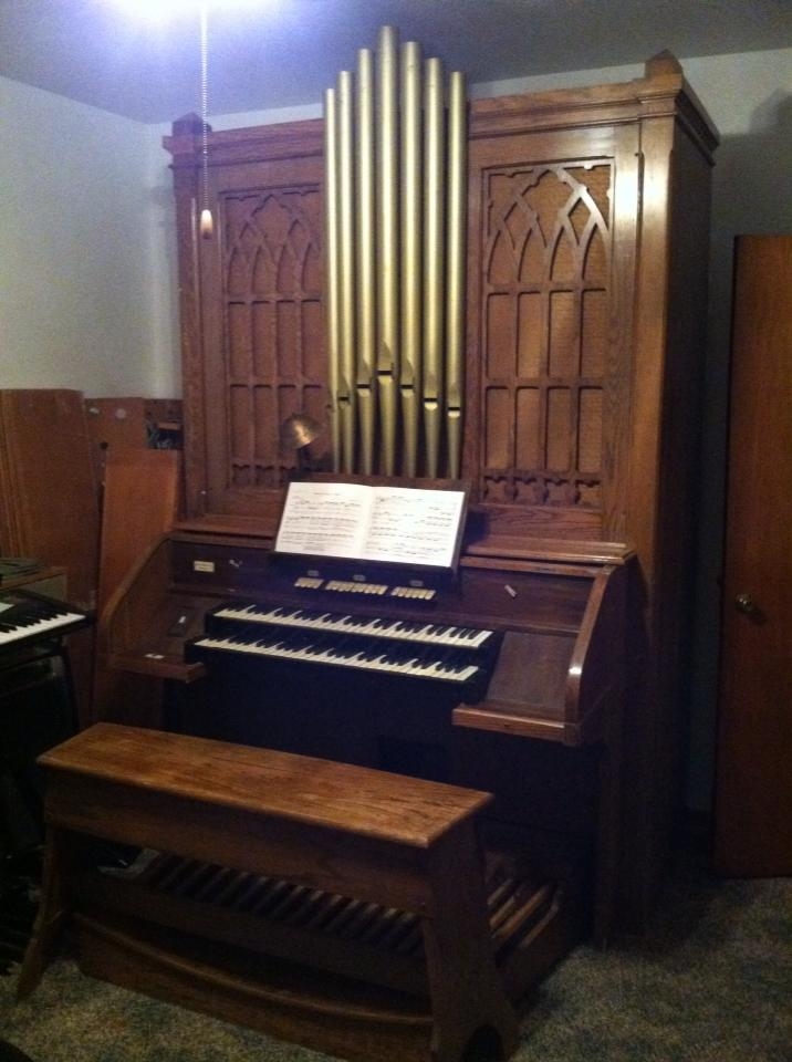 Drew, I believe the largest pipe organ in Philly is the Wanamaker Organ. I believe it is, in fact, the largest in the US. Not sure which church organ would be the largest, but I'd certainly be willing to take it for a spin wherever it is. I, too, have loved pipe organs since I was a child. Sat in front of one in the choir loft of the Lutheran church I grew up in, with my Mother's sister playing it, while I was in the children's choir. That love was instrumental (pun intended) in my getting a job at Wicks Organ company 20 years ago. That job, in addition to just being awesome, also helped me realize the lifelong dream of having my own pipe organ in my home. While there, I bought a small 2-rank instrument from an old church in Perryville, MO. Wicks Opus 1384 was in my home for about 13 years until I got married, and the ceilings in this house weren't tall enough to accommodate it. So, I sold it to a friend who'd started his own organ company, and he installed it in a small church over in Missouri. Here's a picture of it just after I got the case and console assembled after reworking all the electrical connections and cables.