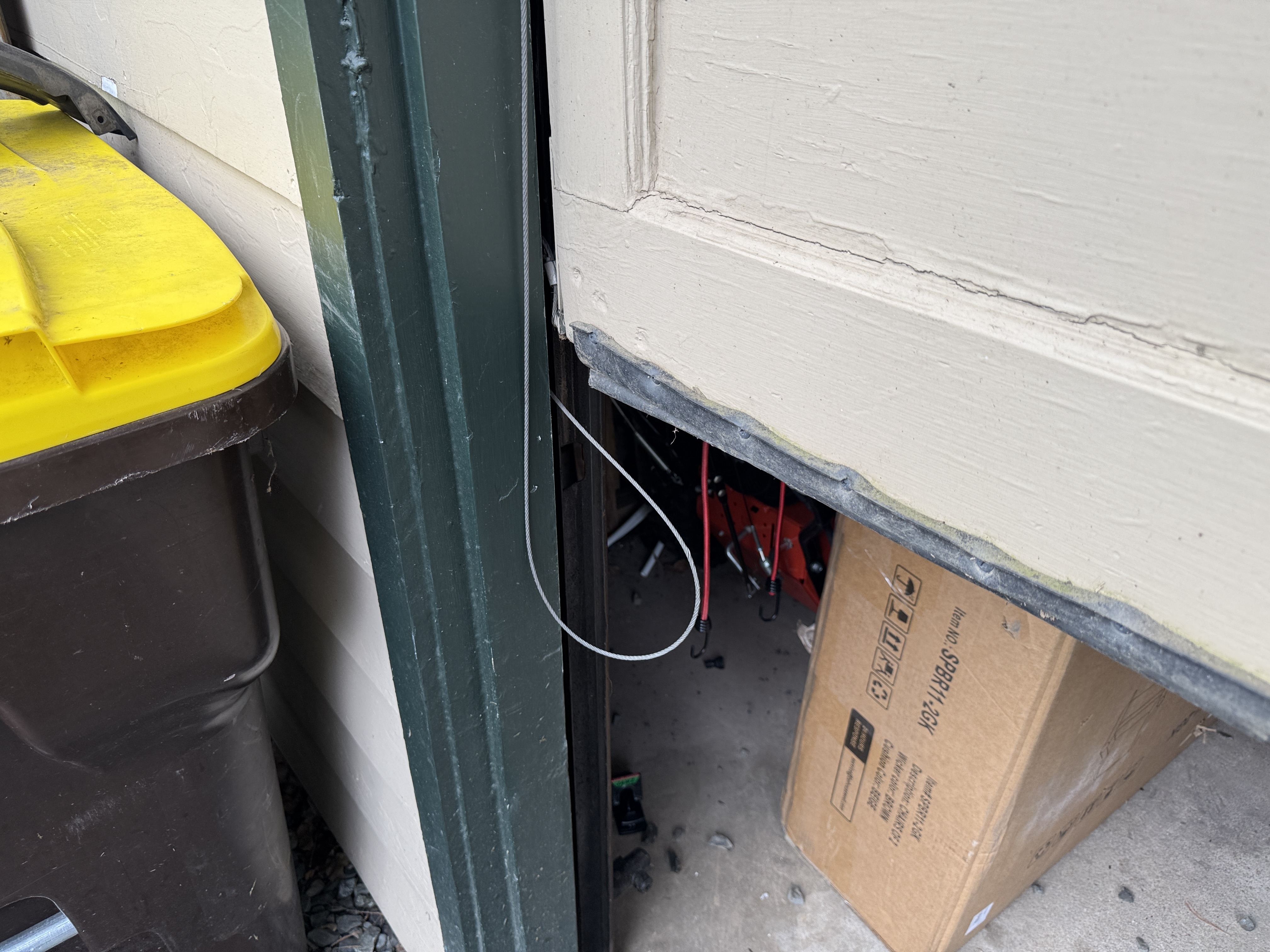 Be glad that door didn't come down while you were pulling in, Drew. I lost the windshield on a Porsche 912 that way long ago in my misspent youth. That was my first lesson on garage door springs, and threatening landlords with a lawsuite for maintaining an unsafe condition.