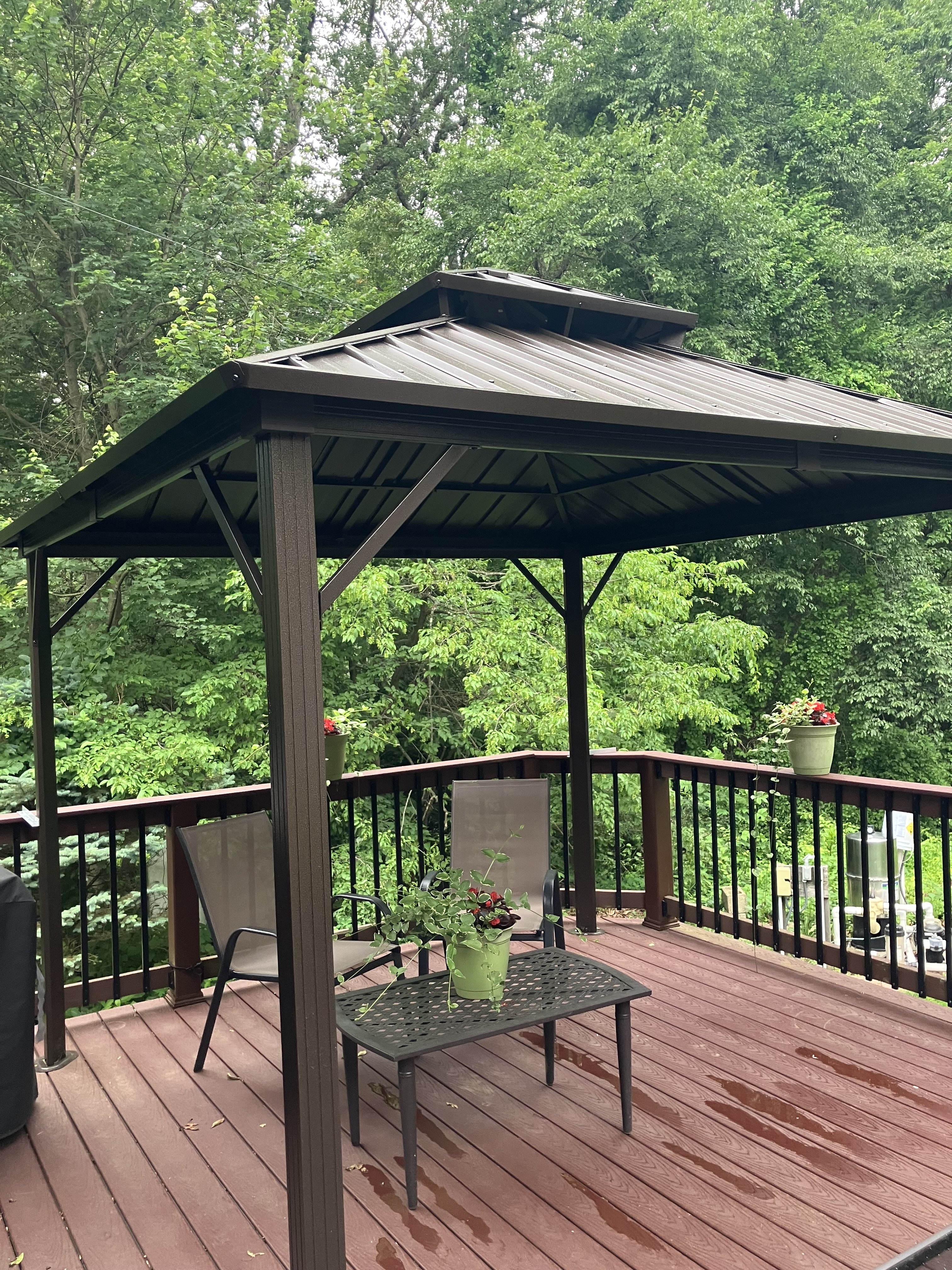Today I hope to get the screens and curtains hung inside the gazebo. I also braced a couple of the corners with 1” by 1” aluminum angle to the deck side rails for a bit more support. The gazebo is on our back deck so kind of protected from heavy wind, so that it hopefully won’t affect it. Kathleen should be happy now because she loves to sit outside in the evenings during the warmer months.