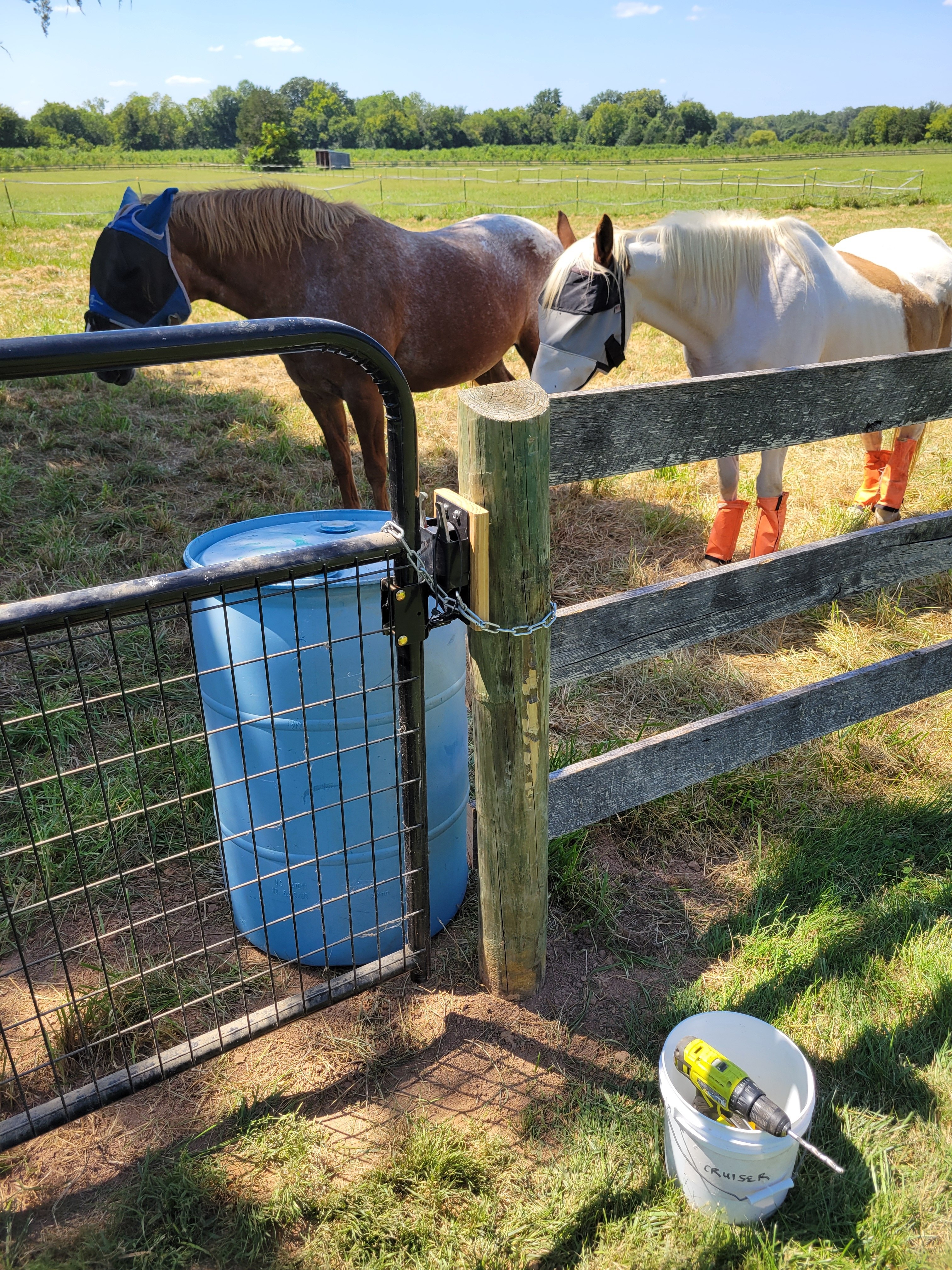 Yes the latches are good for us. The horses are pretty docile and usually don't hang around the gates. The gates swing both in and out of the pasture. Good latch design, easy enough for one hand operations. The wife insists on chaining them though. So be it.@riptides Looks nice! Do those latches work well for you, or perhaps more importantly, your horses? Many moons ago, I visited a breeder that had those style latches and they grumped a bit that their horses were always opening the latches, but I've known some horses to do strange things, like a friend's horse that liked to let itself out of its stall, and then proceeded to rearrange the rest of the herd, one by one into different stalls, and then lock everyone, including itself back in.