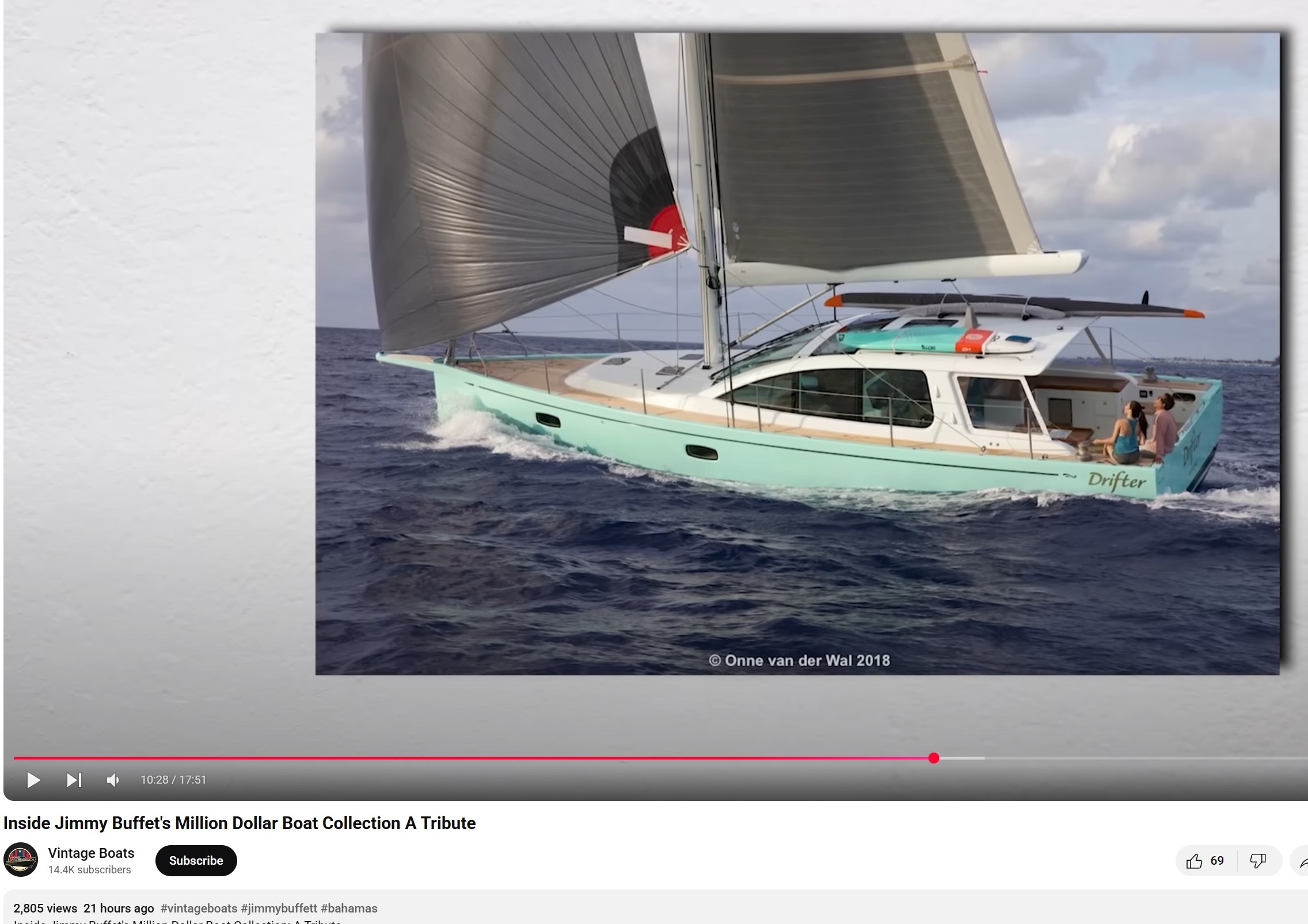 One of them allegedly was of Jimmy Buffet's sailboat but I wasn't sure if that was true. Well, along comes this youtube video