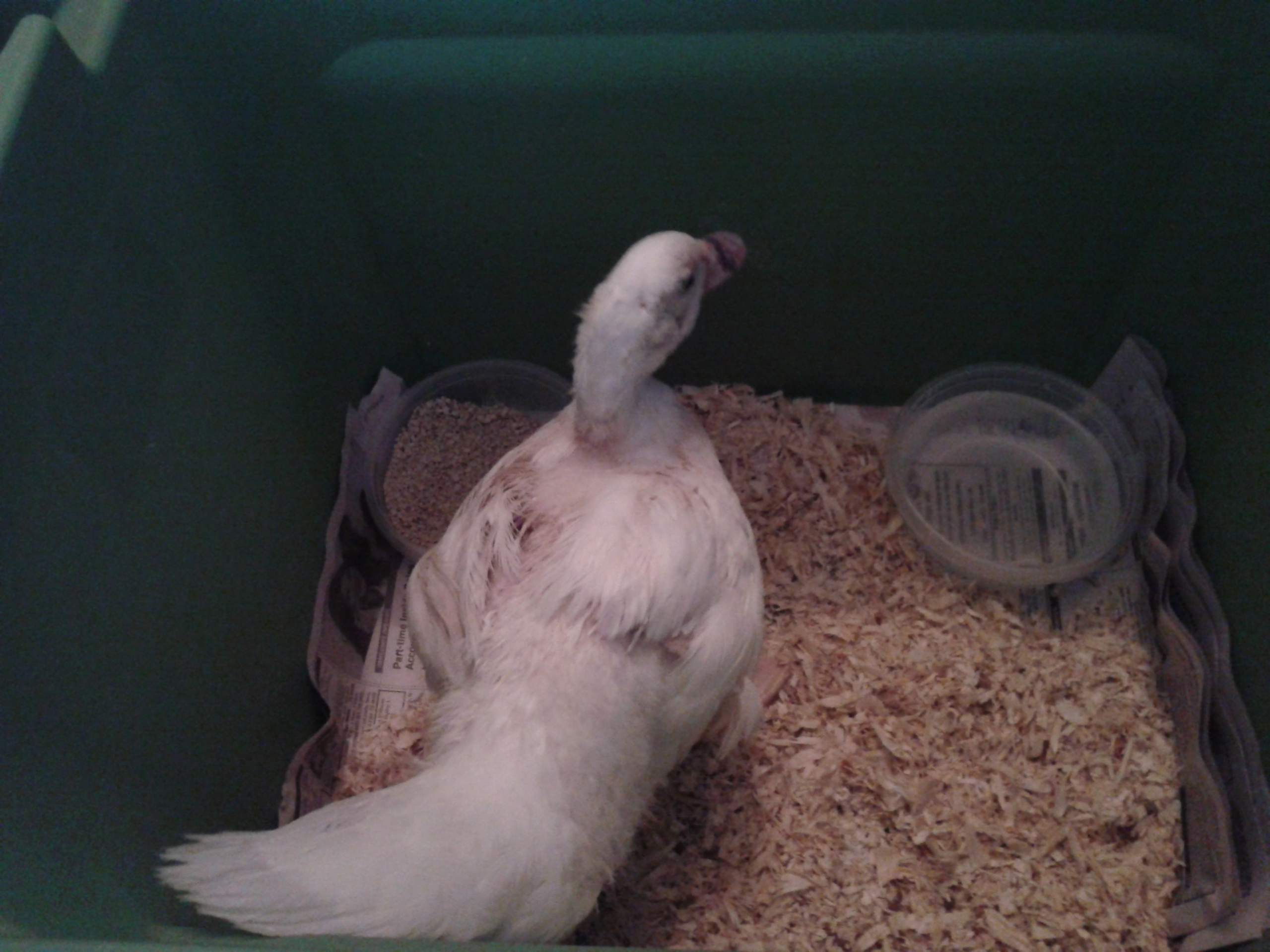 PS the first picture is today, the second one is the day she came home, April 14th, (the other duckling died overnight that night.).