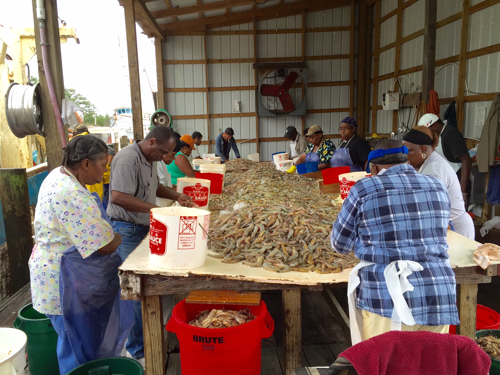 We had a wonderful trip on a very rainy day yesterday to a commercial dock/fishery at Swans Quarter, about half way East to the Outer Banks. I found the docks by looking for the tall masts of the shrimp trawlers, and easy to find in a small town. Shrimp was caught yesterday morning, we saw it coming off the boats, then into the pot that night but gosh that was good. Had some for shrimp cocktail and some I cooked in butter and wine over pasta. All I needed was a Bubba's Shrimp hat...