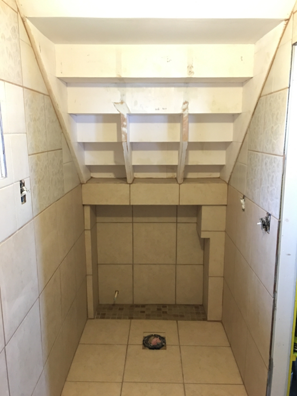 David, what is the ceiling height above the commode, ah, is this a siting area only? I like the arrangement of the different tiles, it makes it interesting.