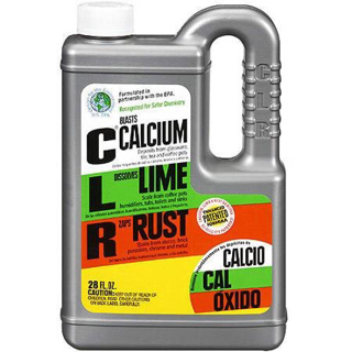Try some CLR. It works way better than vinegar on calcium, lime, rust.