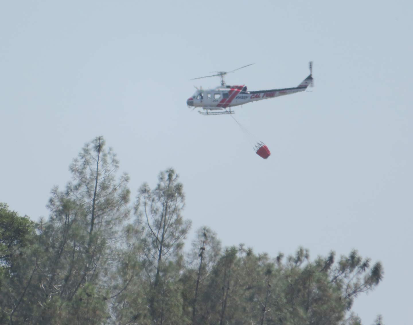 Just across the canyon a very large house was almost covered by a thick shroud of smoke, and a helicopter dragging a water bucket hovered overhead. I watched as it dumped it's load, but not on the house. Then back to the reservoir to fill up again, then it just circled the house. A borate bomber plane also began to circle but held off on a run, all this while an OV-10 spotter plane kept an eye on things. The Butte County Safety Scanner page on Facebook told me it was a grass fire that had been stopped before it reached the house, but it was a close thing. Close to here, too, only 3/4 mile away. But 1000 feet of that were bare canyon wall and water, so unless an ember managed to float that far, I was still relatively safe. About that time the phone rang and it was my bulldozer neighbor, who lives another two miles to the east, asking if I'd seen the fire. He'd been watching it since the beginning, as his property is much higher and he has a view looking down on that location. He said that a burnt manzanita leaf had fallen in his yard, so I think we can all be grateful that the fire didn't spot over the lake and take off again. Took them less than half an hour to stop the flames from spreading; very good response from a fire service that has been heavily criticized in the past. Here's the incident log from Facebook: