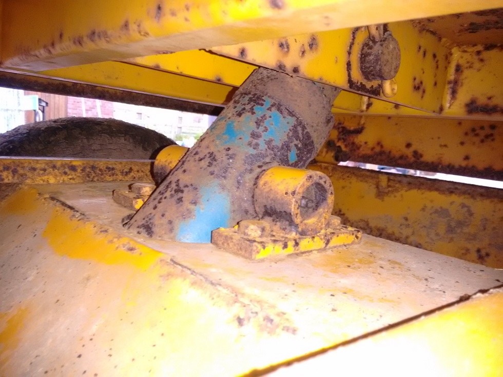 After power washing underneath these are pics of cylinder and rear pivot. Let me know if you need a different angle pic - not much room under there so snapshots are very hit and miss affairs.