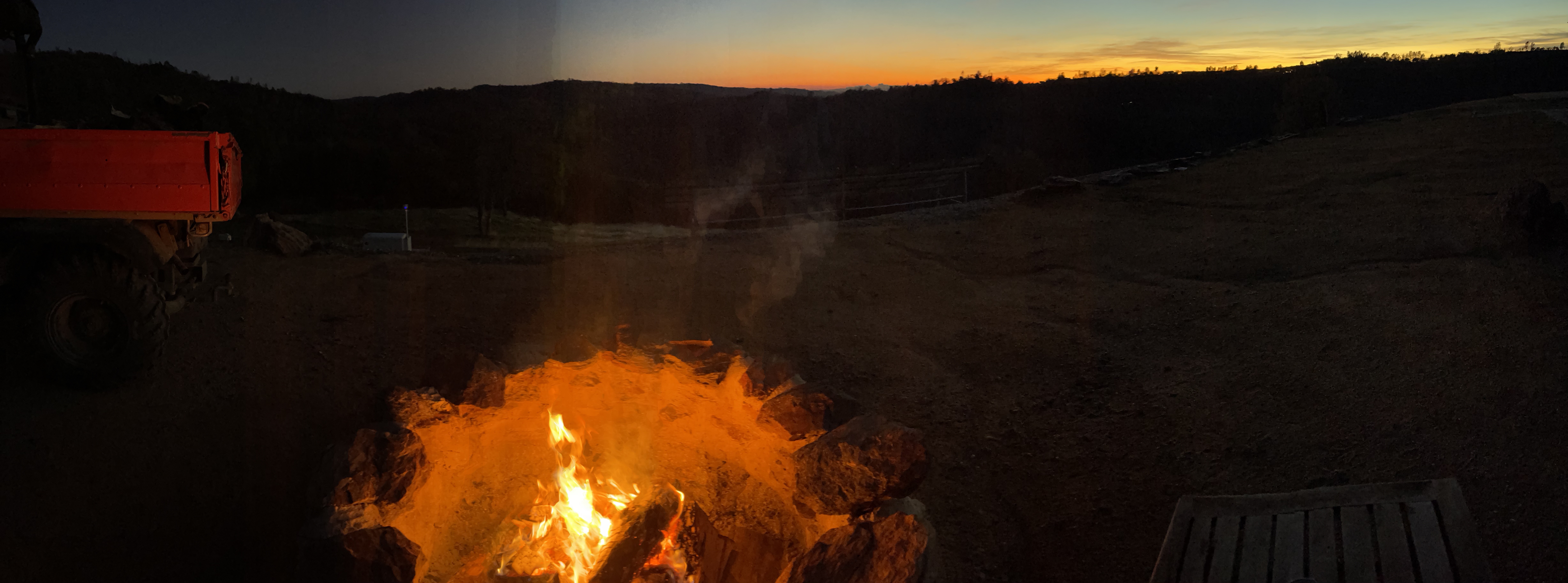 Felt the need to get away from the desk for a while, so fired up the splitter and loaded another pallet full of wood. Instead of throwing the scraps on the ground, they went into the bed of the side-by-side, and when the splitter ran out of gas, it was nice to just drive over to the campfire ring and have plenty of wood to build the fire.