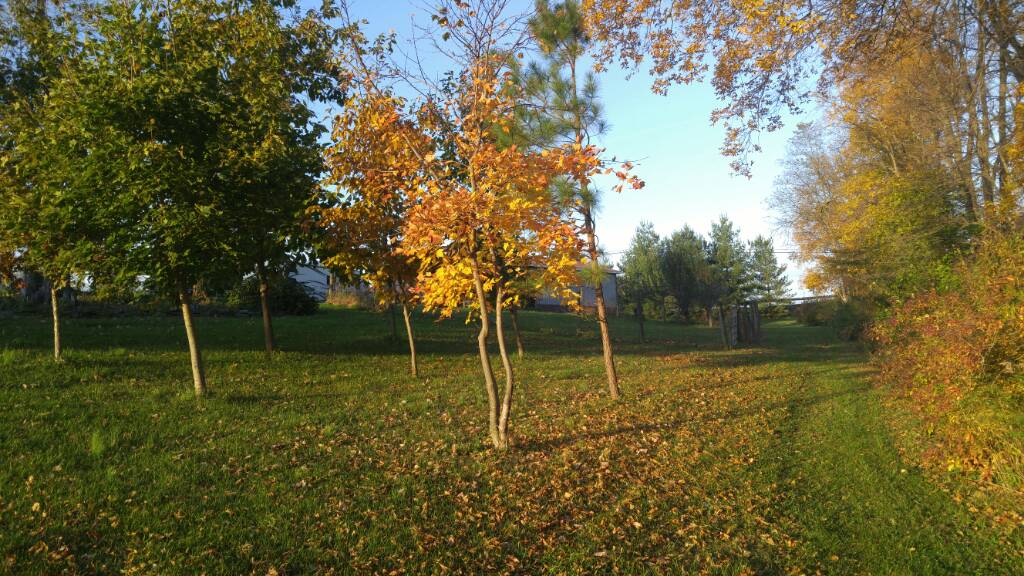 1102171725.jpg been trying to decide if i want to keep this tree, leaves are pretty, but the trunk isnt. Down over the hill where i planted several oaks, just because i like planting trees. The little pine behind this tree is one my youngest son started in a class in gradeschool. Tomorrow's his birthday.