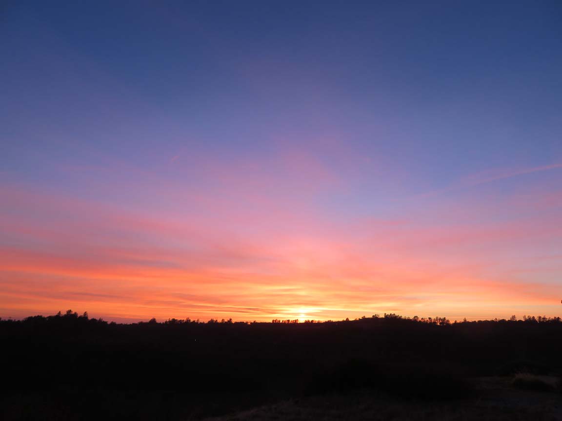 It’s raining, but over in the East, this orange ball straining through the clouds.