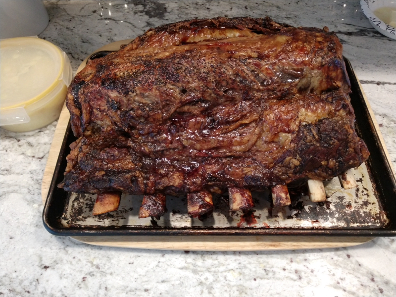 That looks awesome! I ate dinner already, but that made me hungry again! I did a smoked prime rib roast last week and sliced it down and packaged in 2 to save for New Years. After having smoked rib roast, you won't want to have it any other way.