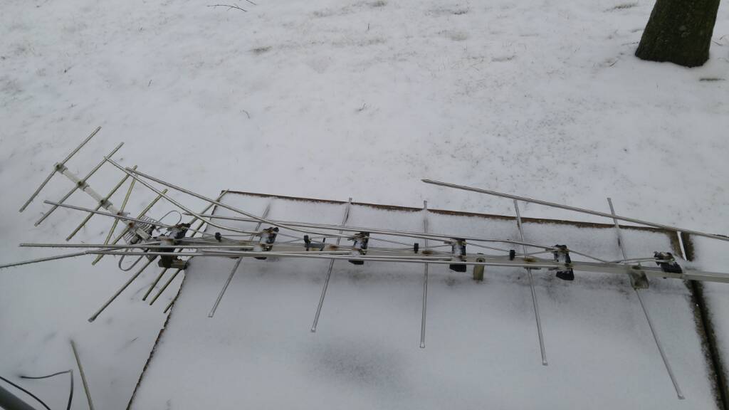Right before my surgery in nov, i was trimming a tree and knocked down my tv antenna that was up on the side of my house. I had this one stored away, so its just sitting on my deck as a temp antenna. Only need uhf for hd. I bought a new amplified flat hd antenna, but never got it up due to surgery and much complications. Just had something removed last thur. from my surgery in Nov. Im just now getting to where i can move around freely, but have to watch it.