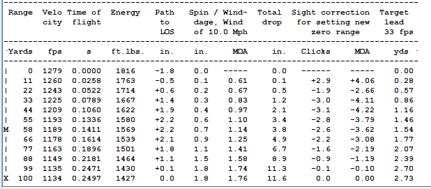 Is 1279 fps the right sort of region for muzzle velocity ? As it goes out to 100yds that would be a difficult stability region for many bullets. Is your big chunk of lead less worried about transonic flight, or do you get many tumbling when trying to reach an optimum load ?