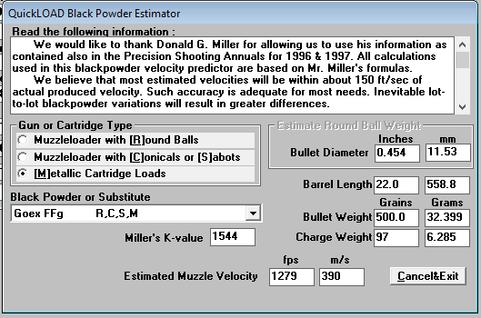 CWB, that is good shooting from open sights. To try and get a feel for your 45-110 I put the Goex figures info into the QuickLOAD calculator.