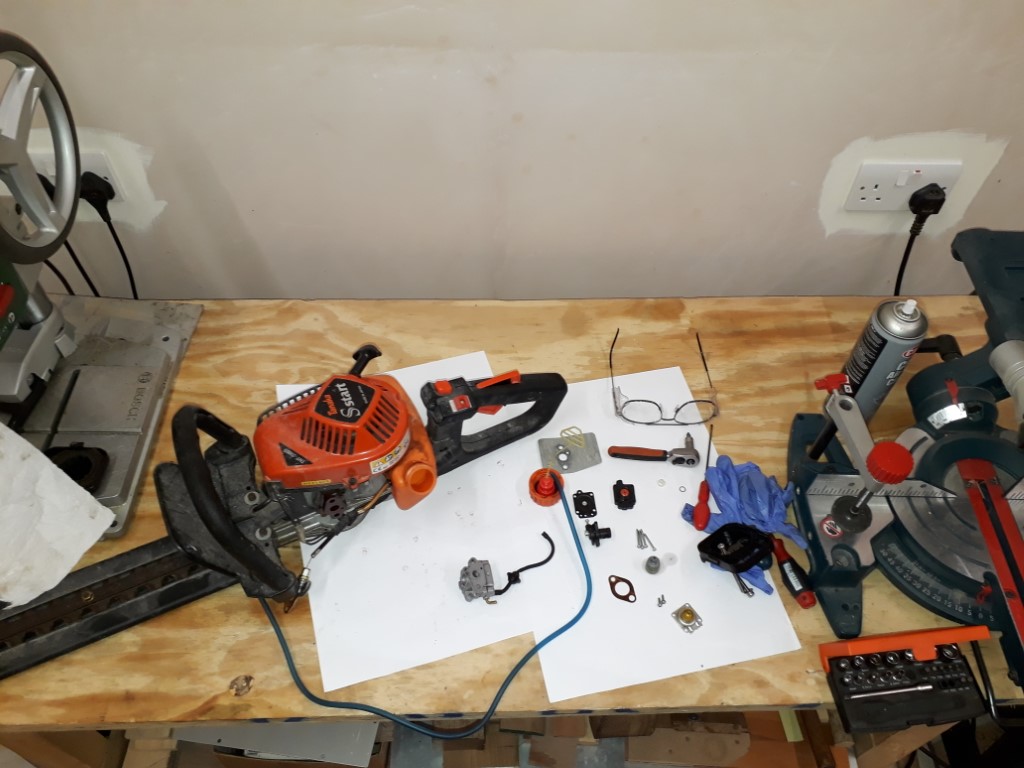 With the carb cleaned and a new fuel line, it was running again. Then this crazy thought came into my head, why don't I delay the bottle of beer for a few more minutes and put away the tools that are still out ?