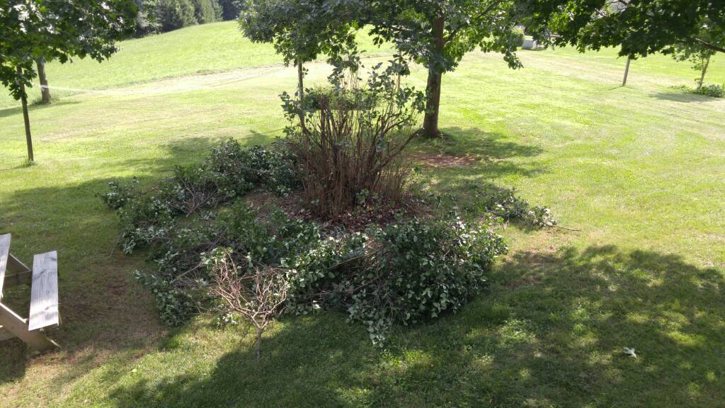 Another big storm last night, but sun and breeze today dried things up. So mowed back yard. Trimmed some smaller trees with lopers, trimmed large lilac bush.