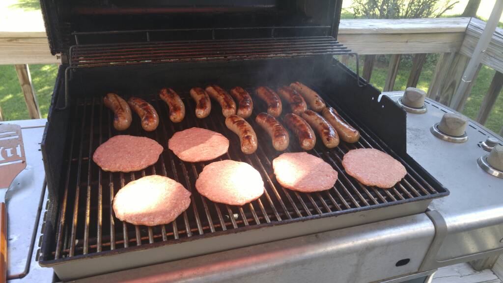 Well time to fire up the grill make some hamburger mix w/sausage onions peppers sweet corn on the cob.:licking: