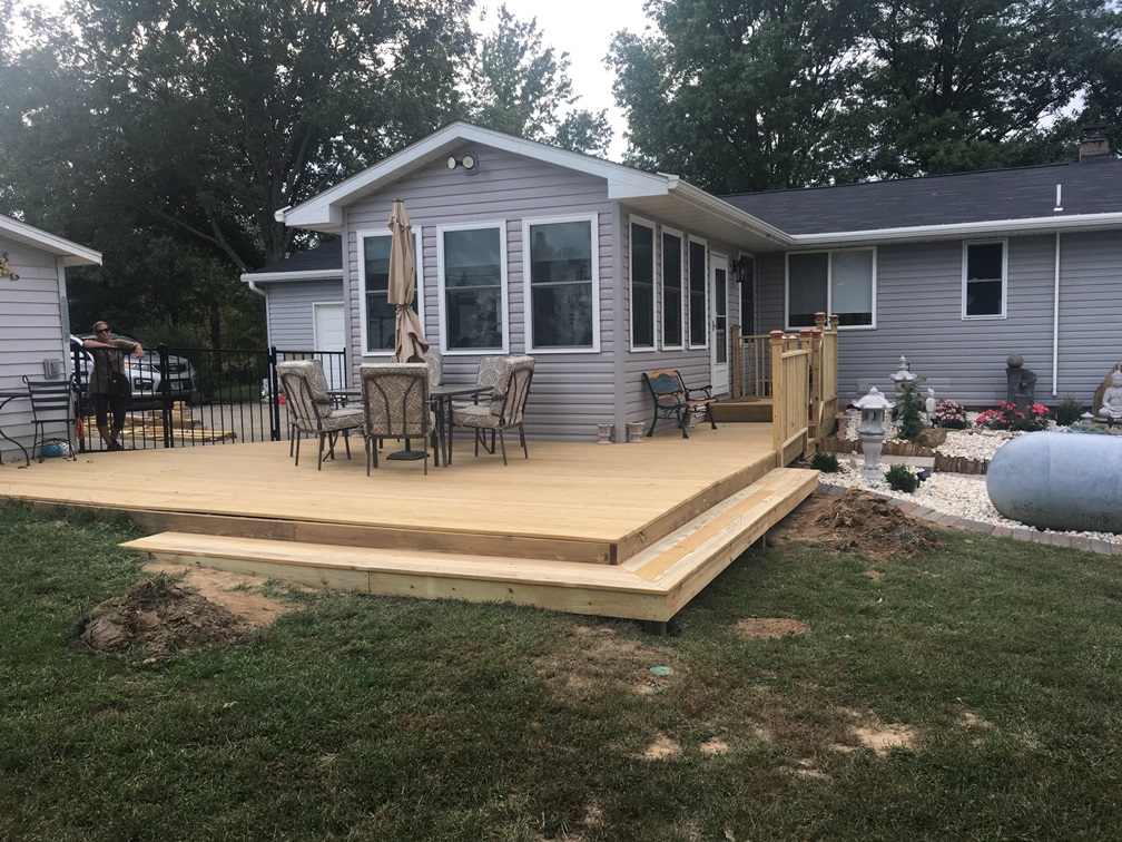 Wifey and I finished the steps around two sides of Deckasaurus on Sunday. The only things left to do on it now are to put up the lattice along two sides to close it off from skunks, possums, and raccoons, add the solar lights for the steps, and finish the last boards at the east end. Poor planning left me just under 2" short on the top boards, so I'm having a guy a couple towns over plane down a couple of 12' 2x8s for me. Then, Deckasaurus will be done.